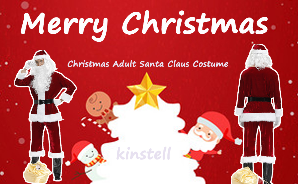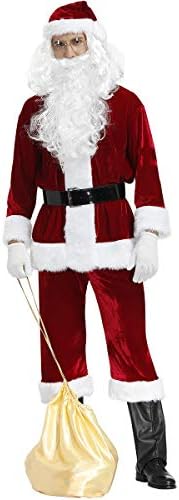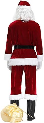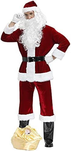 بدلة سانتا الفاخرة للرجال مكونة من 9 قطع من القطيفة لعيد الميلاد للكبار سانتا كلوز للحفلات التنكرية من القطيفة