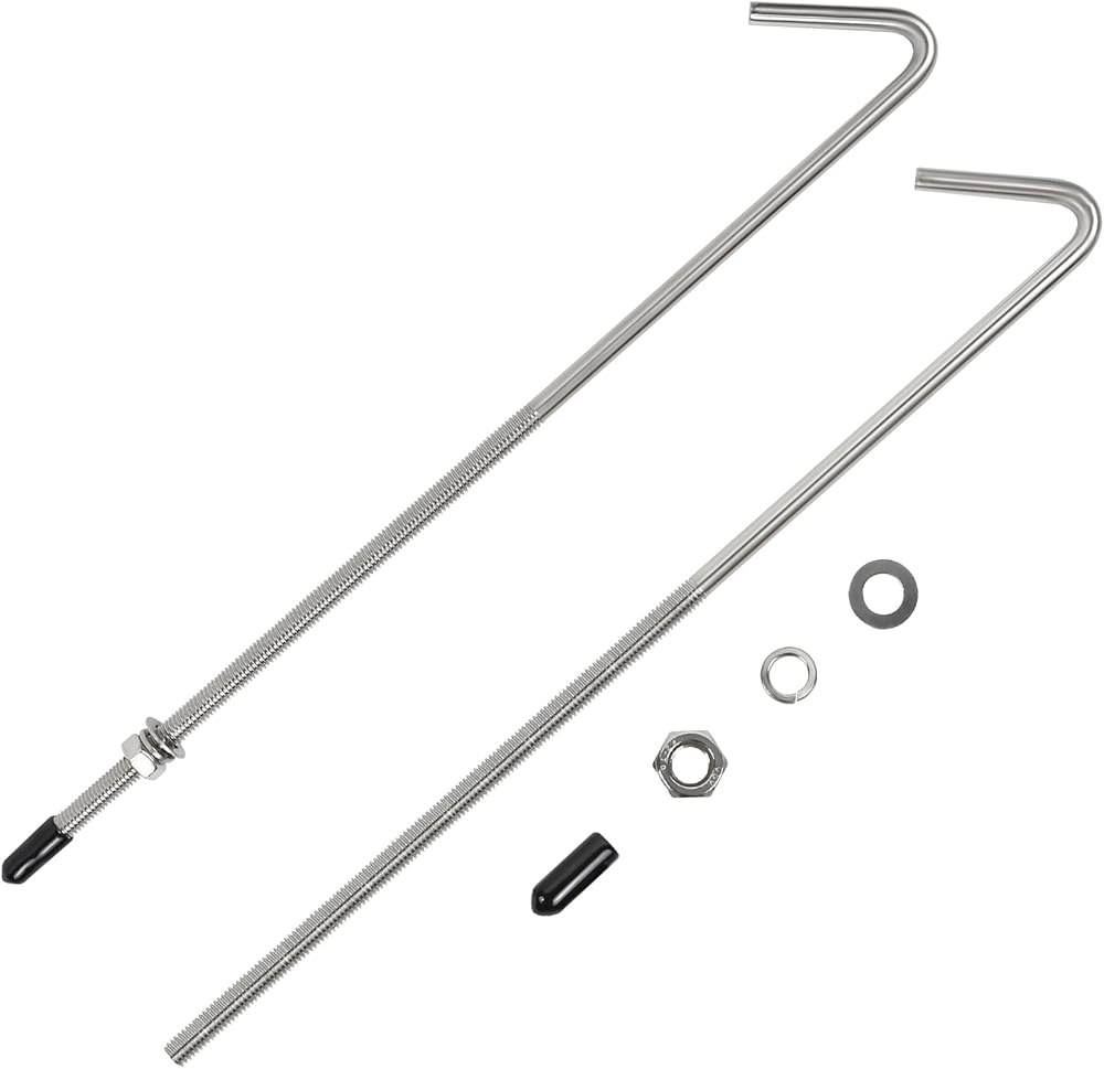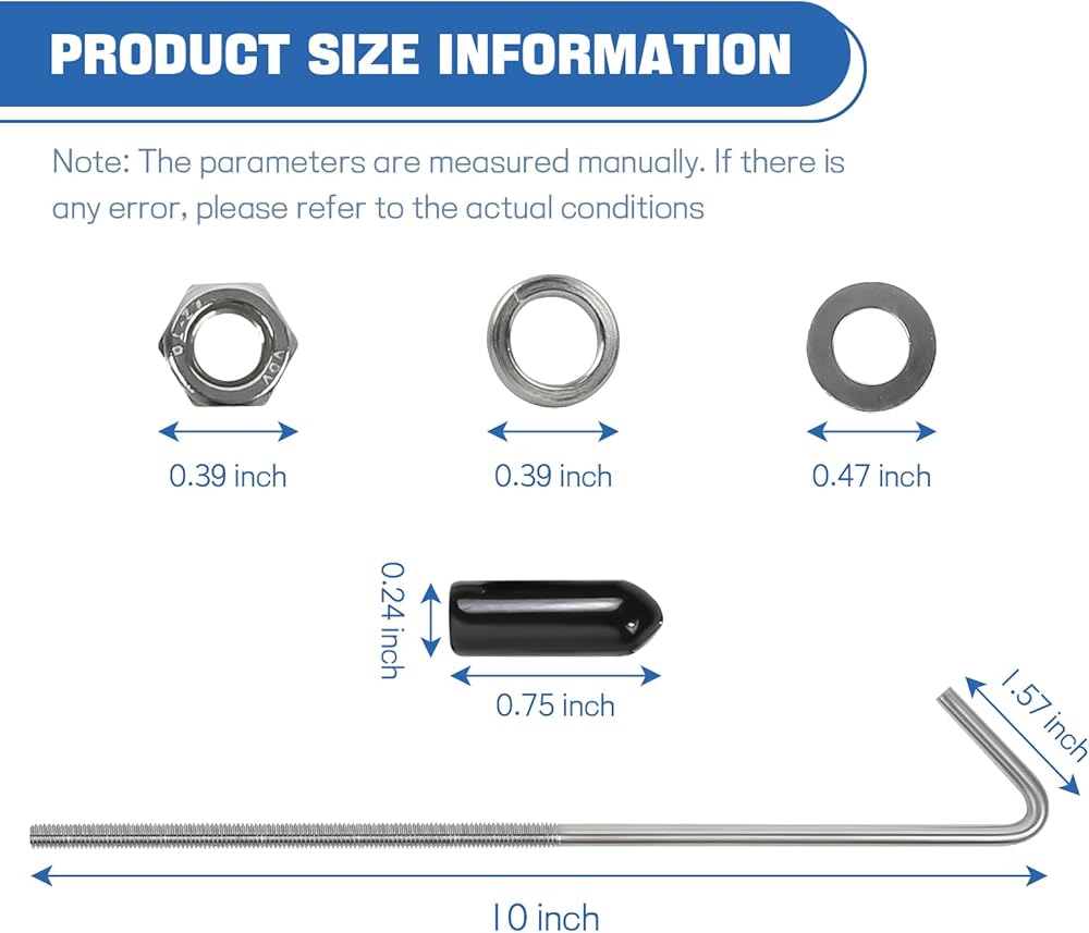 【Easy Installation】: When installing, you can use flat washers to increase the tightening area. Then use spring lock washers and hex nuts to lock and secure to prevent the hook from loosening. Finally, a rubber protective cap is placed over the J-hook to protect the top of the bolt from abrasion and scratches.