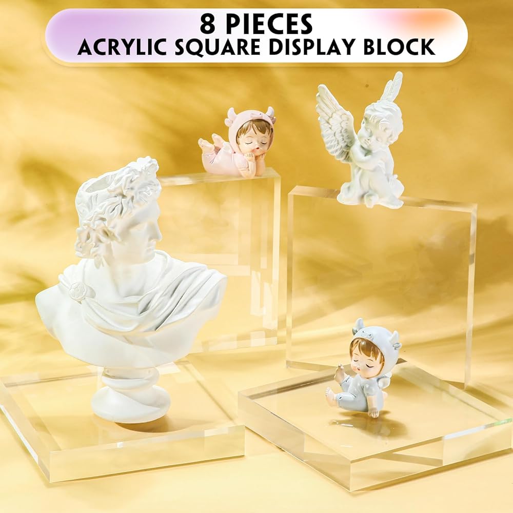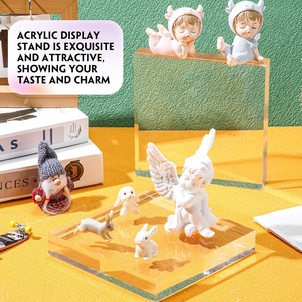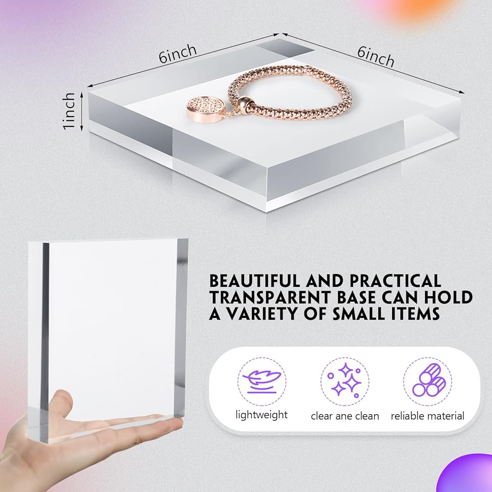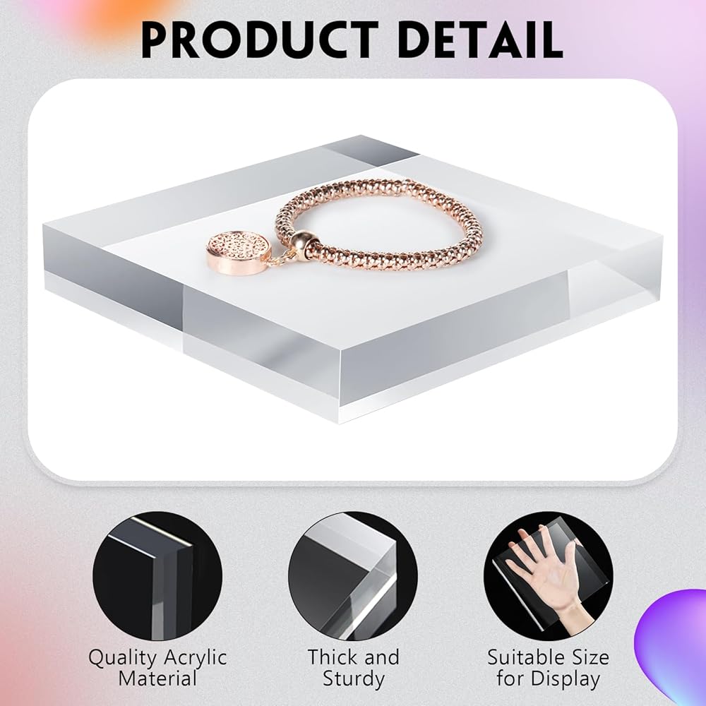 Our acrylic display stands are crafted to perfection with the advanced standards of craftsmanship. Our display blocks have a film on the surface, please tear it off before use. Their sleek design, clear color, and polished surface create a seamless aesthetic experience. They are easy to clean and maintain, promising long-lasting sparkle and shine.
