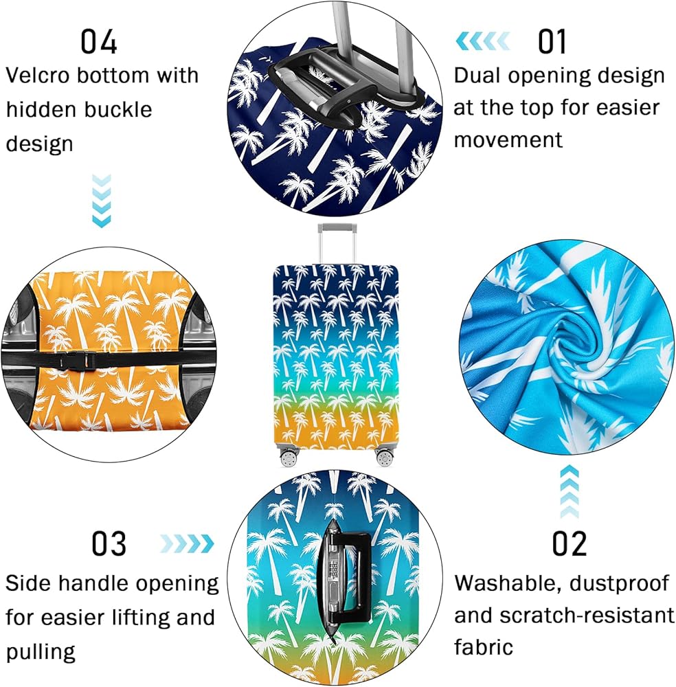 【سهلة تحديد الغطاء السحري للأمتعة يحتوي على سبعة تصميمات مختلفة للألوان ، على التوالي : نمط التدفق الوردي ، ماندالا الوردي والأزرق ، شجرة جوز الهند الوردي والأزرق ، شجرة جوز الهند الأصفر والأزرق ، شجرة جوز الهند المسائية ، نمط مياه التدرج الأخضر والأزرق ، ونمط الموجة النمط الخضراء الفلامنغو ،