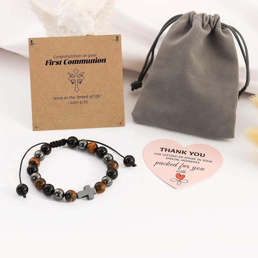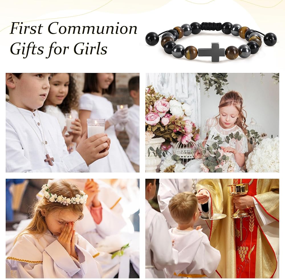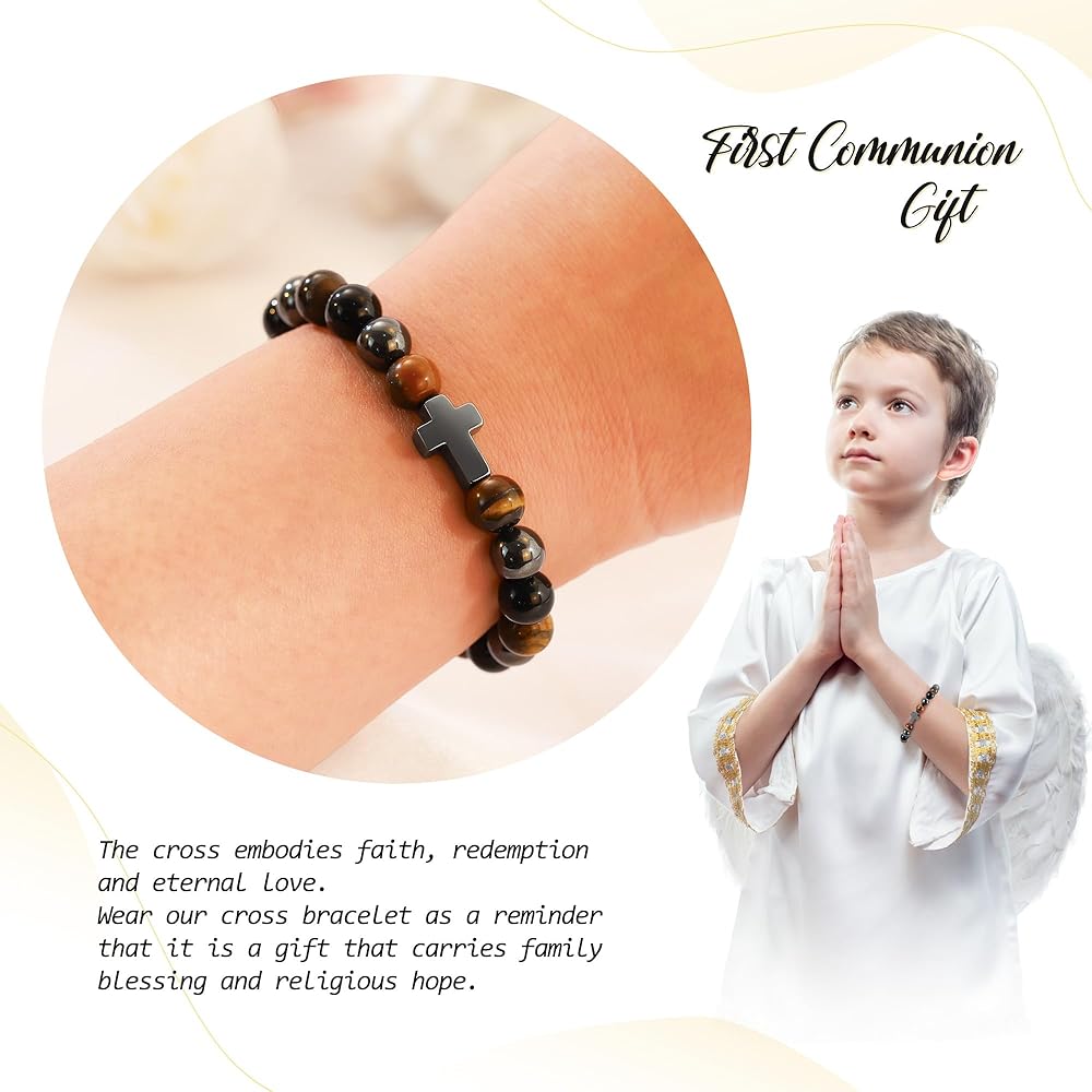 BAYLAY Easter/First Communion/Baptism/Confirmation Gifts for Girls Boys, Cross Bracelet for Kids Teens, Easter Basket Stuffers Gifts