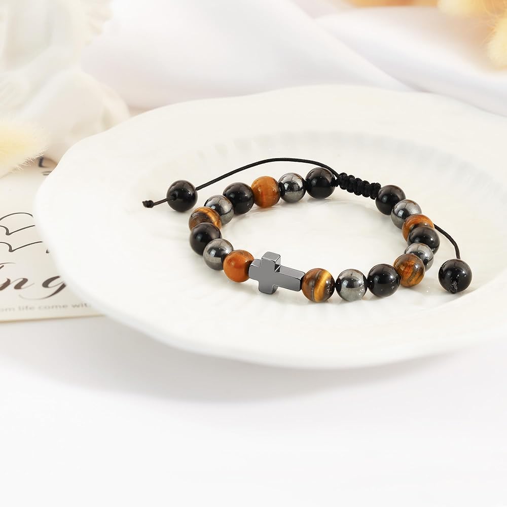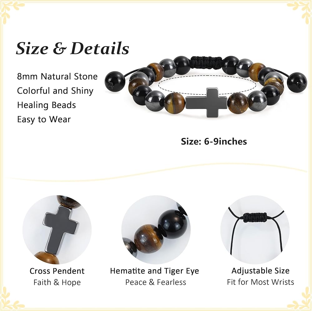 🐣 High Quality Material and Size: Easter bracelets made of 8mm red Imperial Jasper nature stone beads with cross charm, bracelets is adjustable : 7" - 9", fit for most wrists, durable and comfortable to long time wear