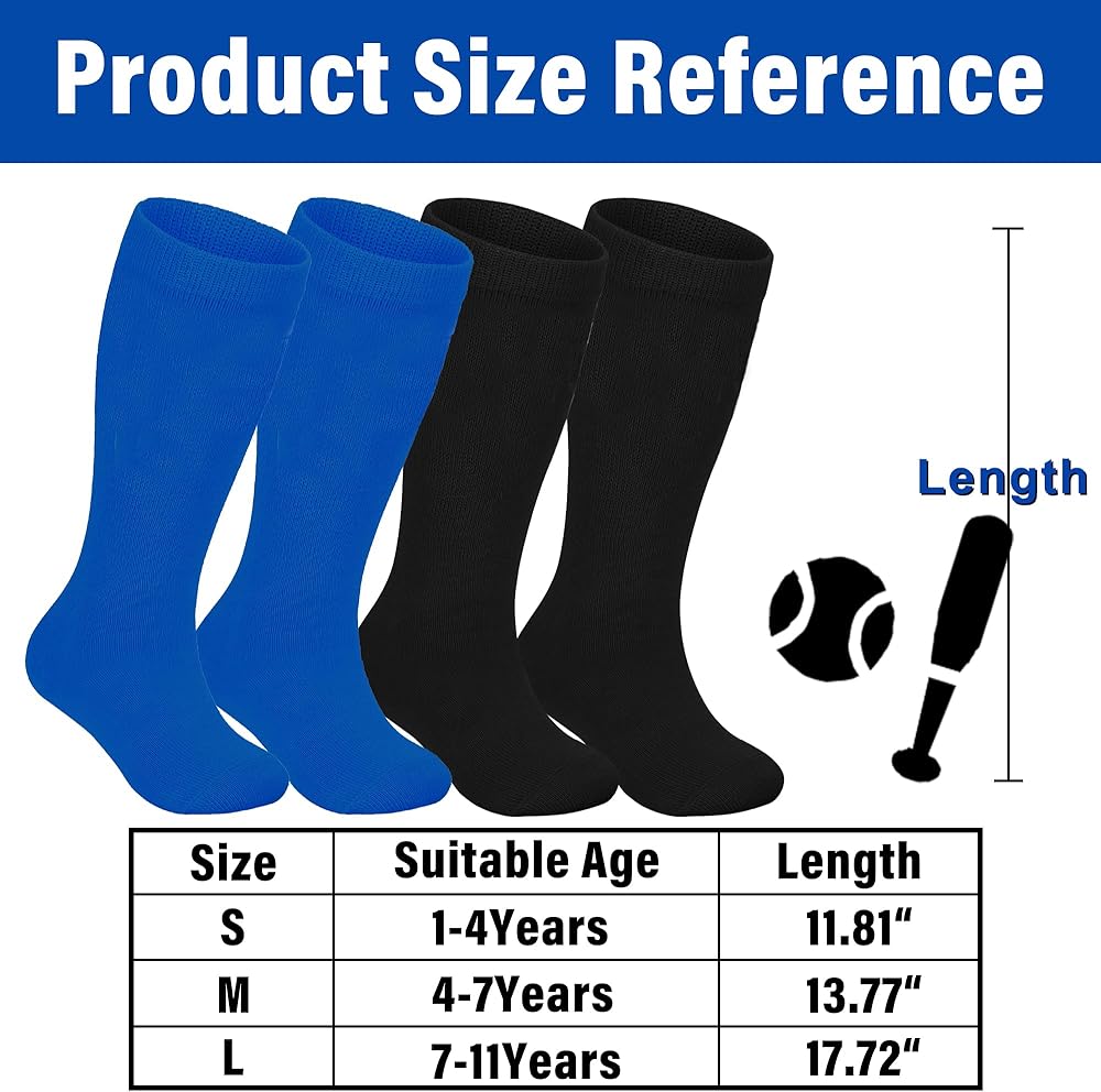 الأحجام المناسبة والمتانة: مصممة للأطفال الذين تتراوح أعمارهم بين 1-11 سنة ، صمود جوارب البيسبول لدينا الصغار مع البلى من اللعب النشط ، وضمان الاستخدام طويل الأمد.