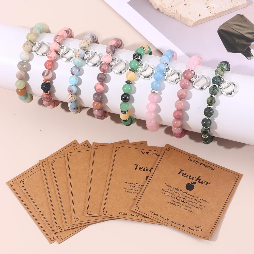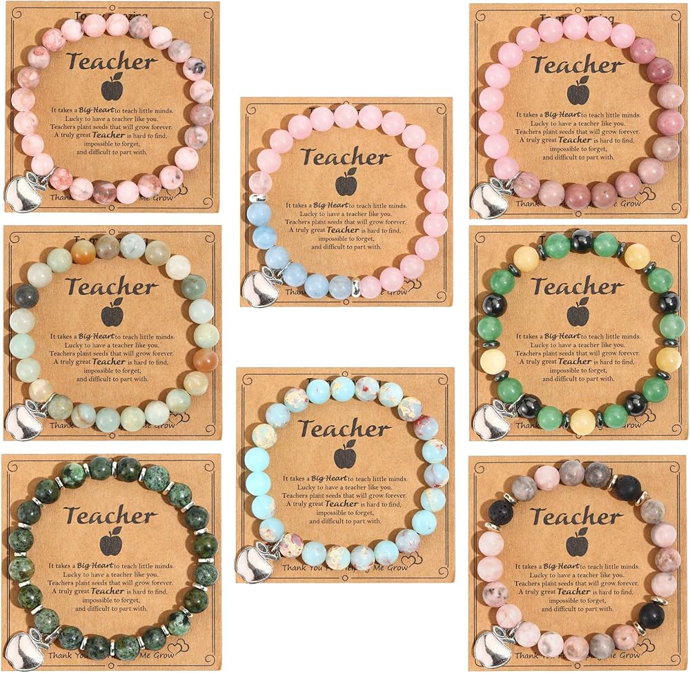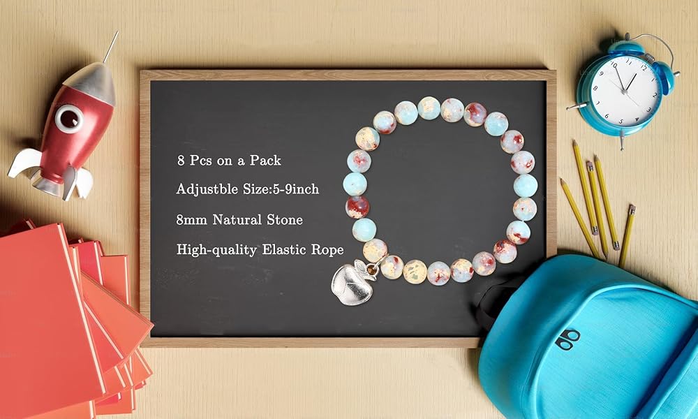【أنيقة ومتعددة الاستخدامات مصنوعة من حبات حجرية ذات جودة متميزة ، فإن هذا السوار ليس جميلًا فحسب ، بل أيضًا متينة وطويلة الأمد ، مما يجعله هدية رائعة لمعلمك المفضل. يضمن الحجم القابل للتعديل من 5 إلى 9 بوصات أن يناسب كل حجم معصم.
