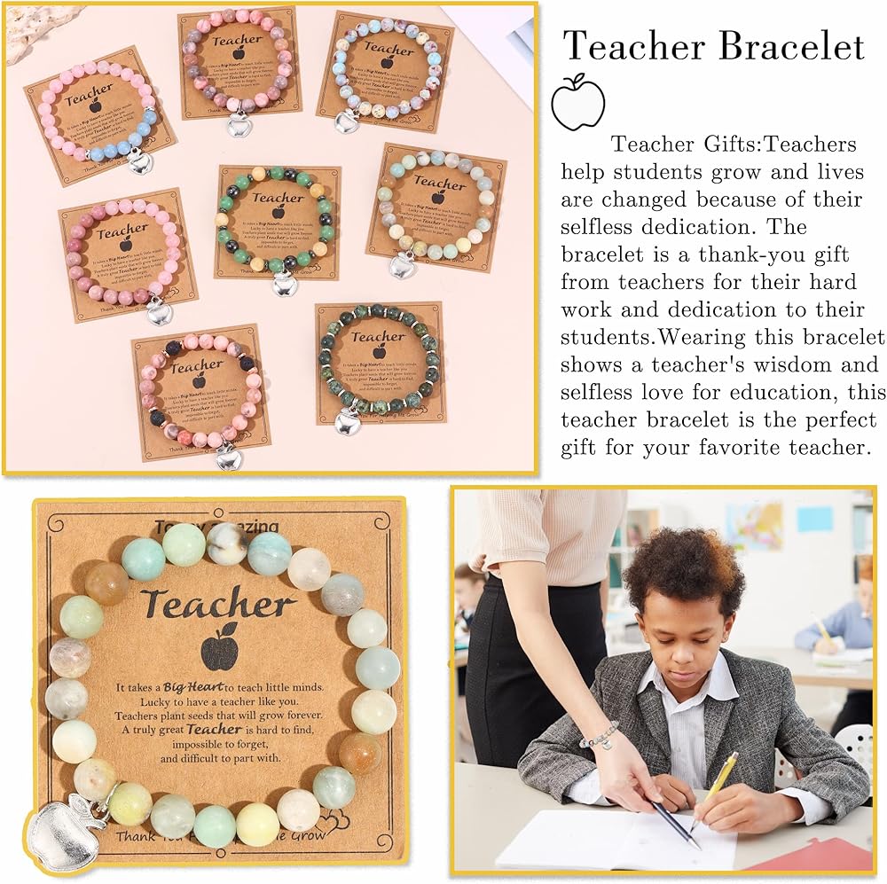 【هدايا تقدير المعلم】 تقديم سوار الحجر الطبيعي 8 مم الرائع من Svovin ، المصمم خصيصًا لإظهار التقدير لأهم الأشخاص في حياتنا- معلمينا! يضم هذا السوار الرائع 8 أحجار طبيعية مختلفة ، تمثل كل منها جودة تجسد الروح الحقيقية للتعليم ، والعاطفة ، والإبداع ، والصبر ، والوضوح ، والشجاعة ، والتمكين ، والتعاطف.