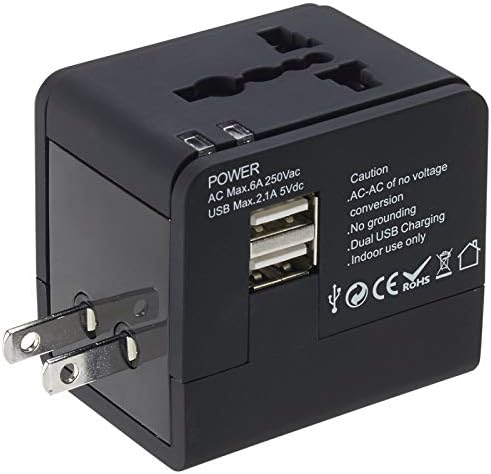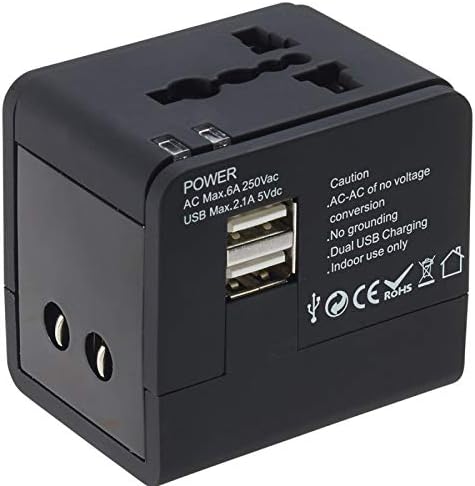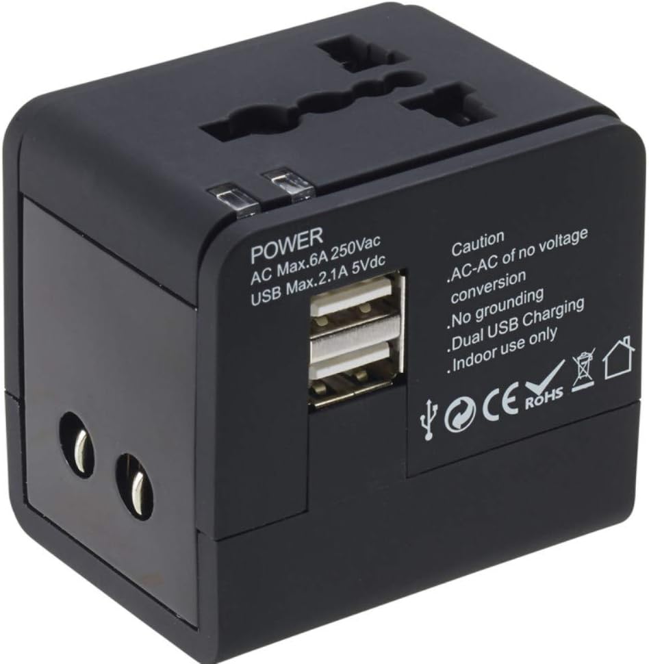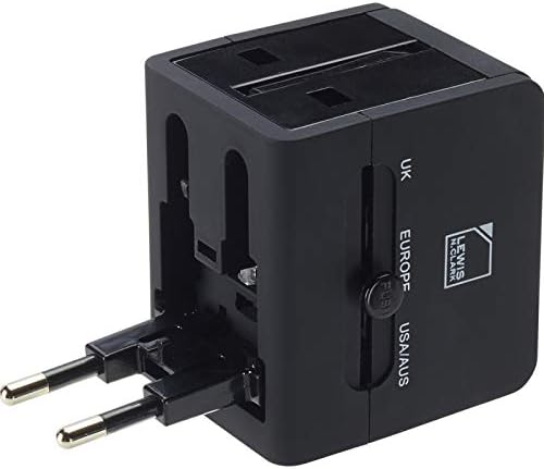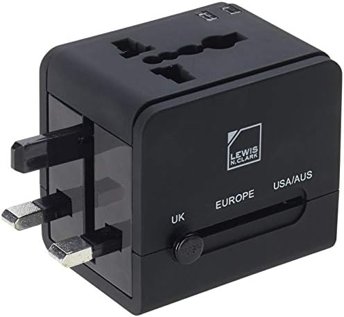 محول حائط عالمي من لويس إن كلارك + شاحن محمول مع منافذ USB مزدوجة للمنافذ القياسية + المريحة (أكثر من 175 دولة) للهواتف المحمولة والأجهزة اللوحية وأجهزة الكمبيوتر المحمولة، أسود