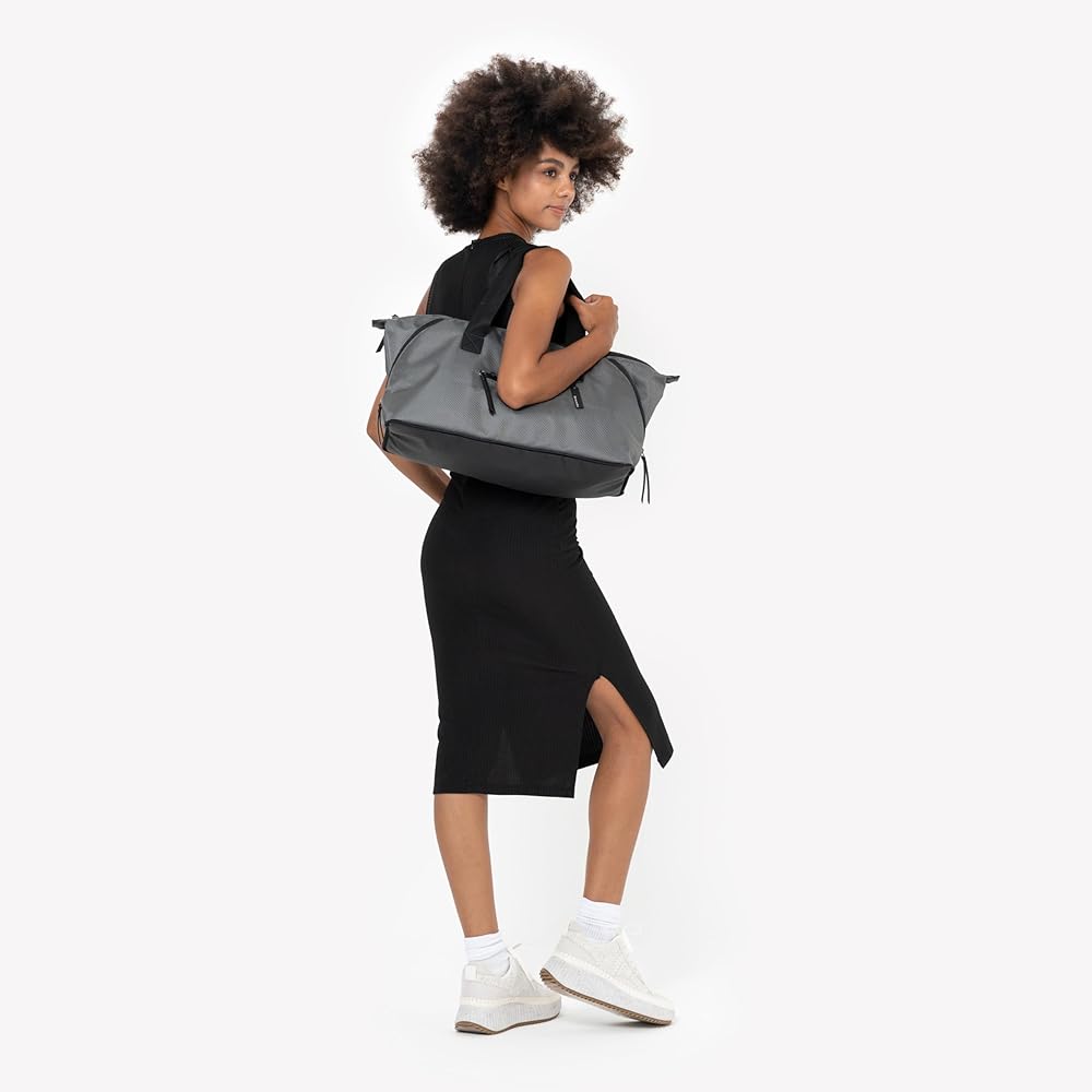 UNIQUE MATERIAL - The combination of 100% Mélange and Ballistic Nylon fabrics makes up this lightweight, water-resistant, and durable design. The light-colored interior lining allows for better visibility when rummaging inside. The Boston has a sophisticated look highlighted by polyester construction and vegan leather trim and detailing. Each Boston repurposes 20 plastic bottles that were otherwise bound for the ocean!