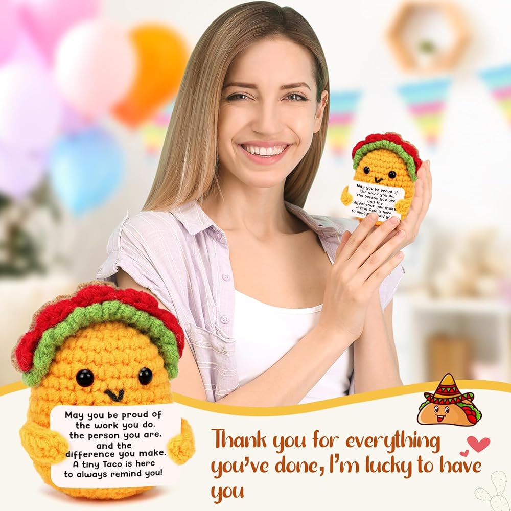 الكروشيه المصنوع يدويًا تاكو: يوفرنا الكروشيه الناعم المصنوع يدويًا تجربة مريحة عن طريق اللمس ، أو التمسك أو الضغط على التاكو يعطينا شعورًا بالاسترخاء. مما يجعله رفيقًا مثاليًا لإجبار الإجهاد يضيف الدفء والسحر إلى مكتب زملائك في العمل