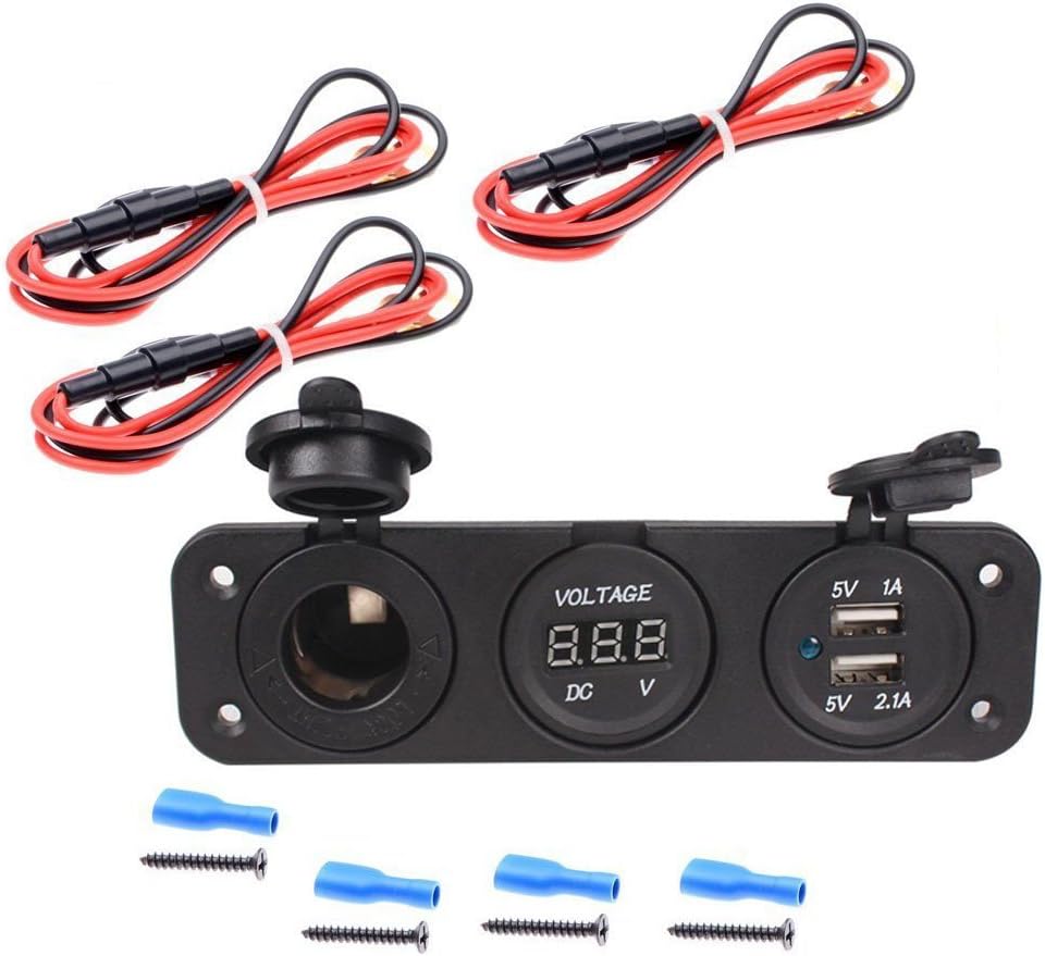 - مقياس الفولتميتر الرقمي بتيار مستمر للسيارة + منفذ USB مزدوج 2 + مقبس طاقة DC12V + عنصر لوحة بثلاثة فتحات