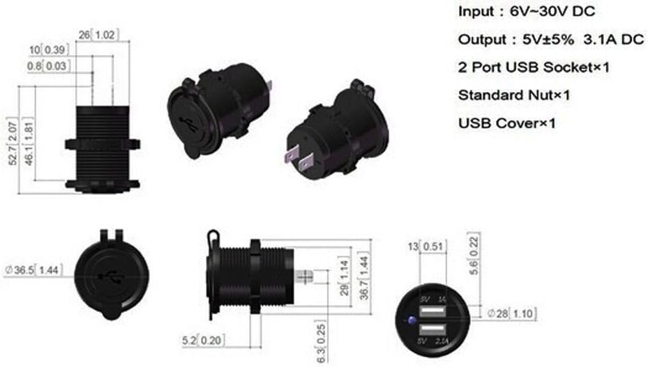 - يتميز مقبس التثبيت المتساطح بغطاء مقاوم للغبار ومناسب لشحن GPS، وIPhone، وIPod، وPSP