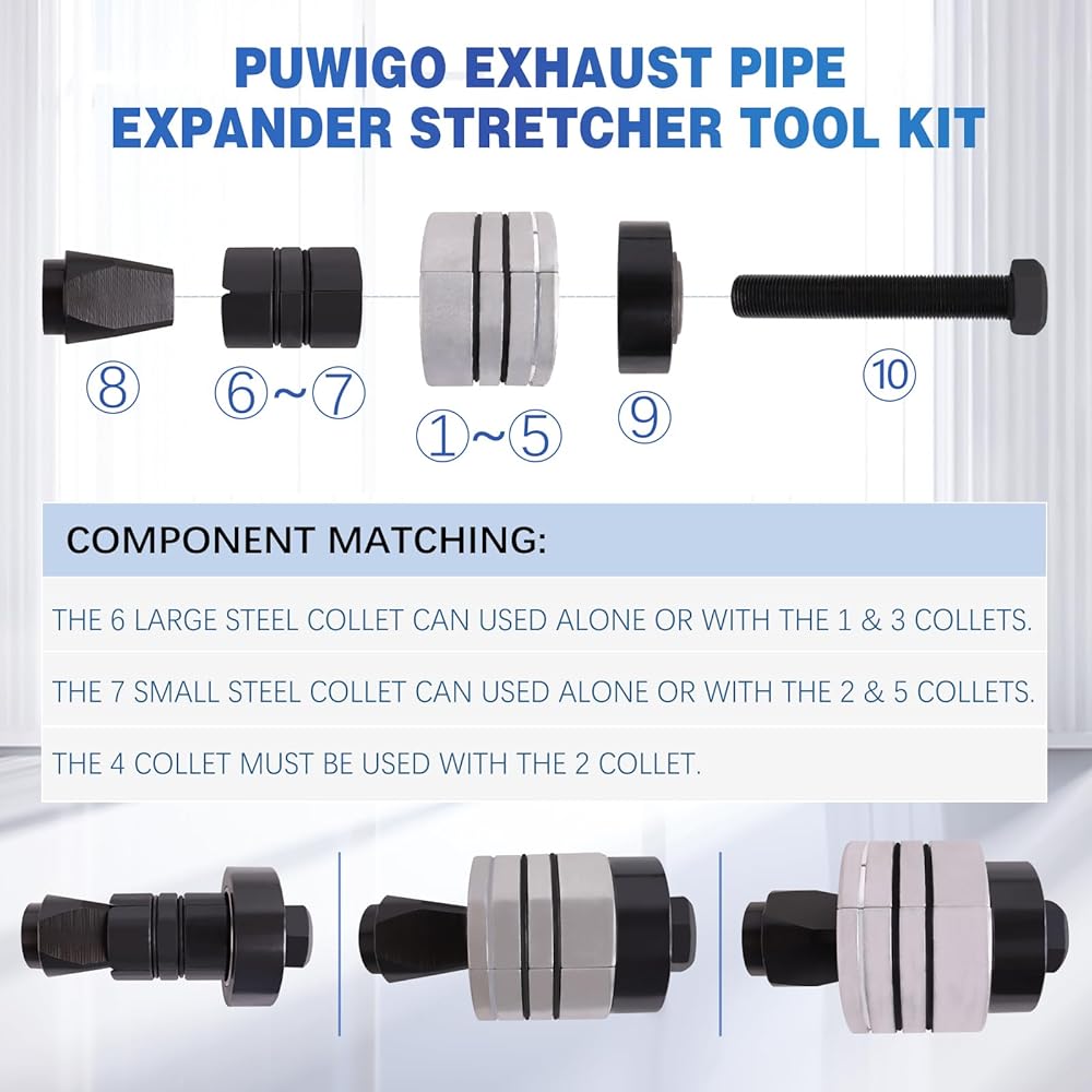 مجموعة أدوات تمديد أنبوب العادم PUWIGO من 1-5/8 إلى 4-1/4 بوصة مع مجموعة من الحلقات المطاطية، مجموعة أدوات توزيع أنابيب كاتم الصوت للسيارة لأنبوب أنبوب الذيل