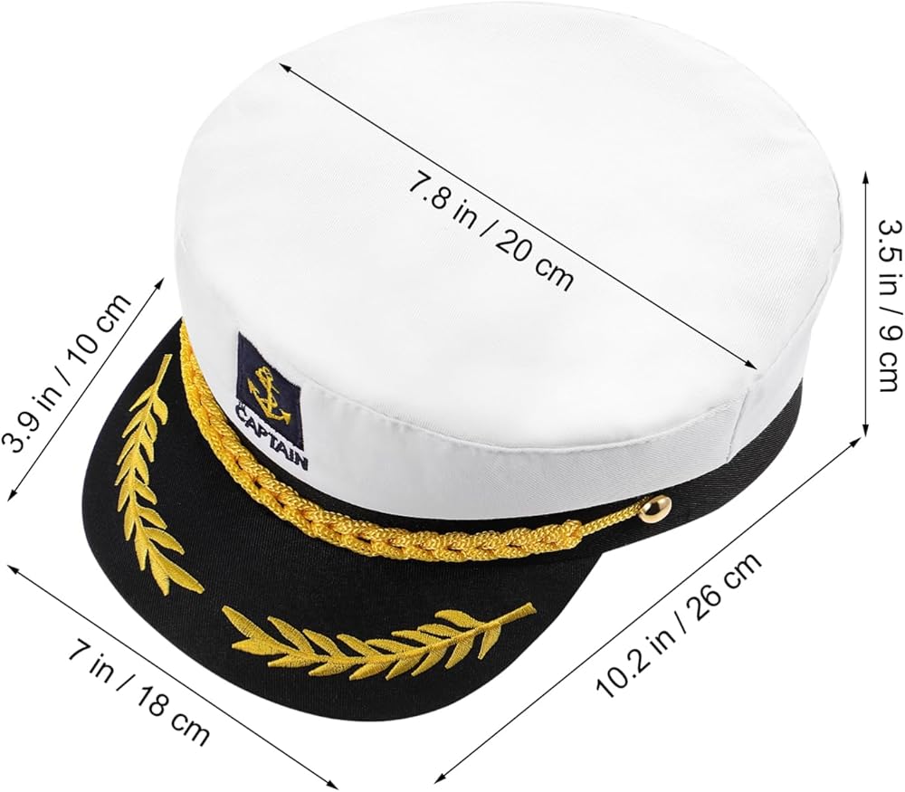 • Adjustable Captain Hat: Size: 26.00X20.00X9.00cm/10.22X7.86X3.54inch. -hole adjustment strap is attached to the back of the sailor hat, which can be adjusted according to the head circumference and fits most people