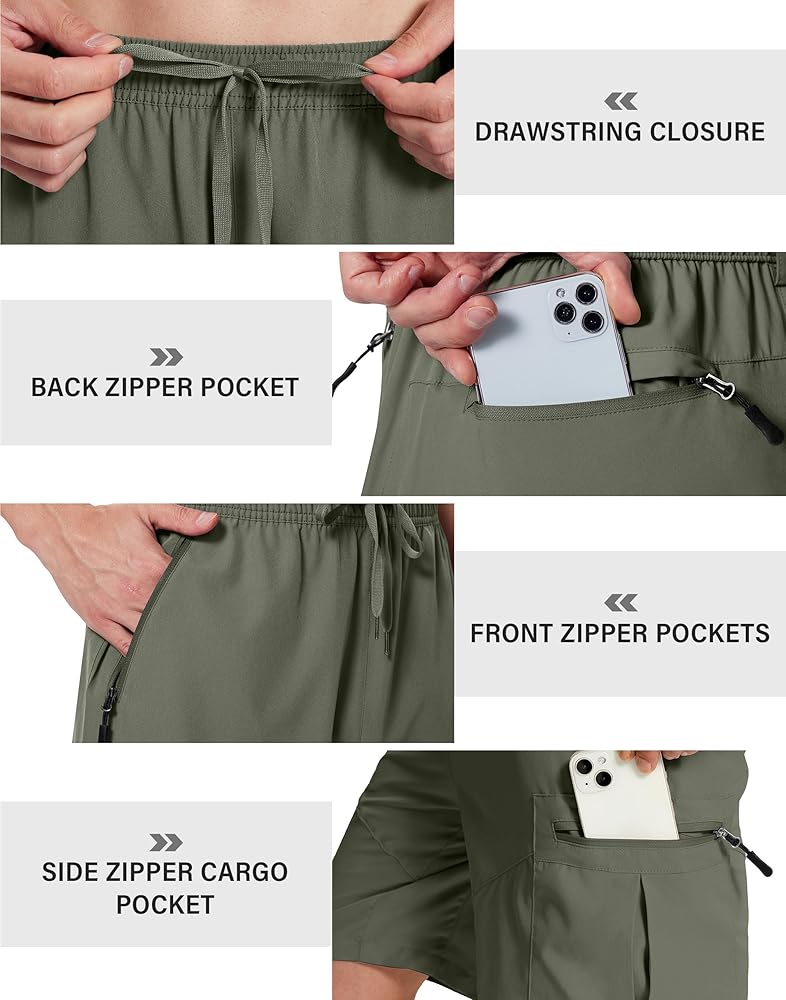 • UPF 50+ ومقاومة للماء: تتيح لك تقنية حماية أشعة الشمس UPF 50+ التحرك بشكل مريح وتوفر حماية كبيرة ضد الأشعة فوق البنفسجية الضارة أثناء المشي لمسافات طويلة واللعب. شورتات البضائع خفيفة الوزن للرجال مصنوعة من رطوبة ضوء القماش المقاومة للماء والسوائل عند الخروج في الهواء الطلق.