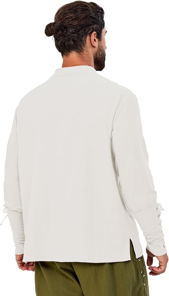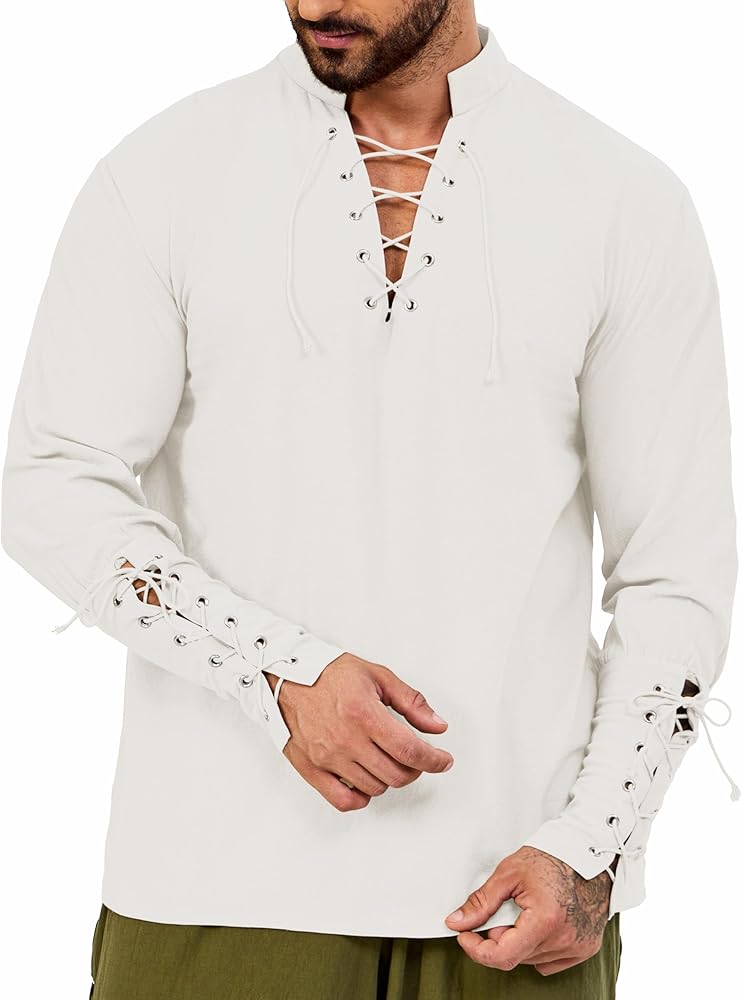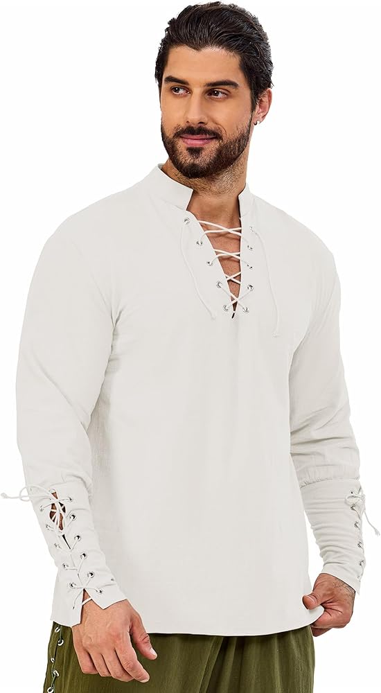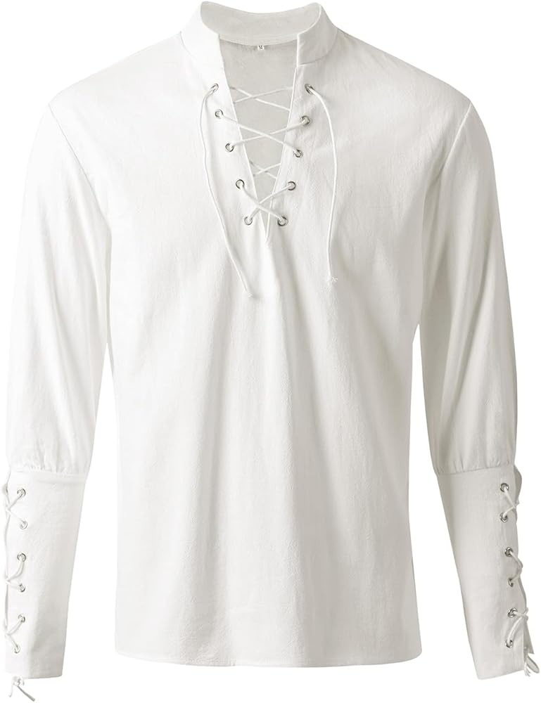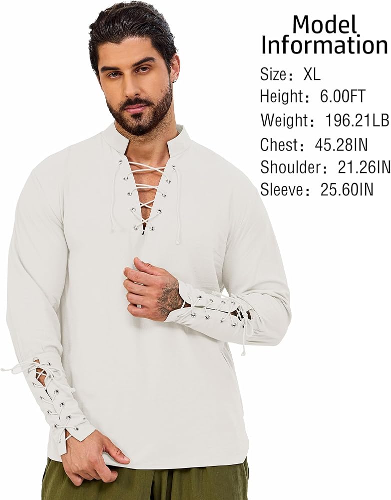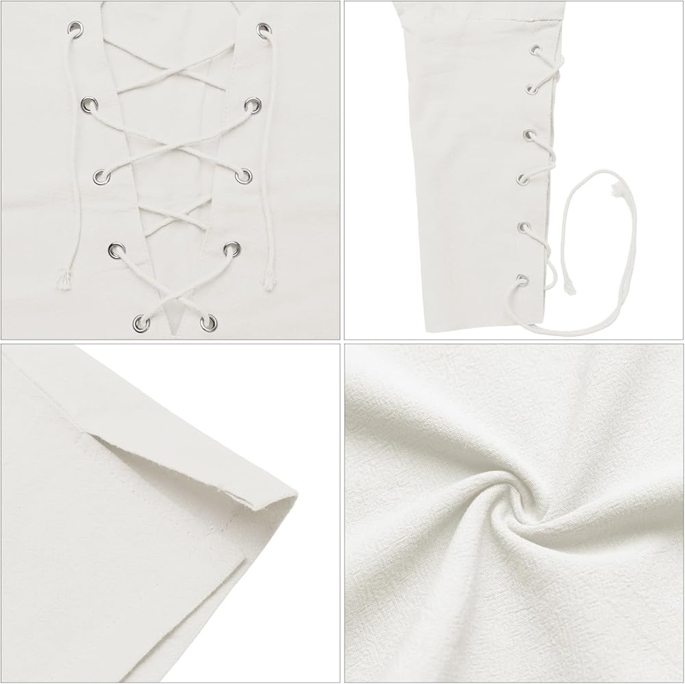 【ميزة】 هناك 4 أزواج من الحلقات في الحافة على كلا الجانبين و V-tech من هذا القميص في العصور الوسطى مع الأوتار. يظهر مع أزرار في الأصفاد ، يمكنك تحويل الأكمام الطويلة إلى أكمام قصيرة للأيام الأكثر سخونة. عند ارتداء هذا القميص القديم ، يمكنك مطابقة مع شورتات قديمة ، وقبعة القراصنة ، وأحذية النهضة ، وحزام القراصنة لتشغيل طابع فريد من نوعه.