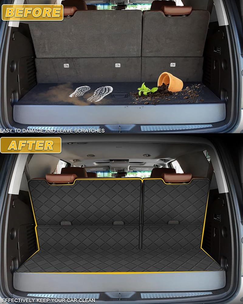 【ملاءمة مخصصة لعام 2015-2020 CHEVROLET TAHOE/GMC Yukon】 حصيرة مسند الظهر وبطانة الشحن مصممة خصيصًا وفقًا للسيارة الأصلية. لا يتداخل موضع ثقب مشبك العلوي الدقيق مع استخدام مقاعد الطفل في الجزء الخلفي من السيارة. باستخدام تقنية مسح الليزر ثلاثية الأبعاد ، تأكد من أن وسادات تناسب سيارتك بدقة وتوفير الحماية الكاملة.