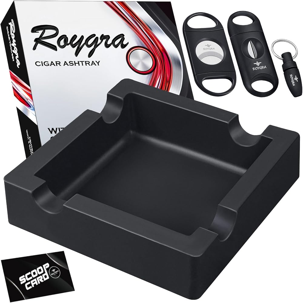 𝗖𝗶𝗴𝗮𝗿 𝗔𝘀𝗵𝘁𝗿𝗮𝘆 - مصنوع من السيليكون ، تصميم أضيق الحدود غير القابل للكسر ، سهل التنظيف ، مع 4 مقاييس رنين كبيرة ، تناسب جميع أحجام السيجار.