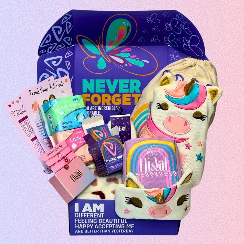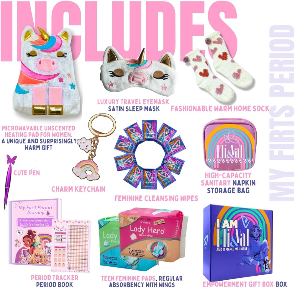 • هدية الفترة الأولى المثالية - مجموعة بداية مدروسة وتمكين للفتيات الذين تتراوح أعمارهم بين 9-12. صُممت للاحتفال برحلتها إلى الأنوثة مع الراحة والثقة والرعاية.