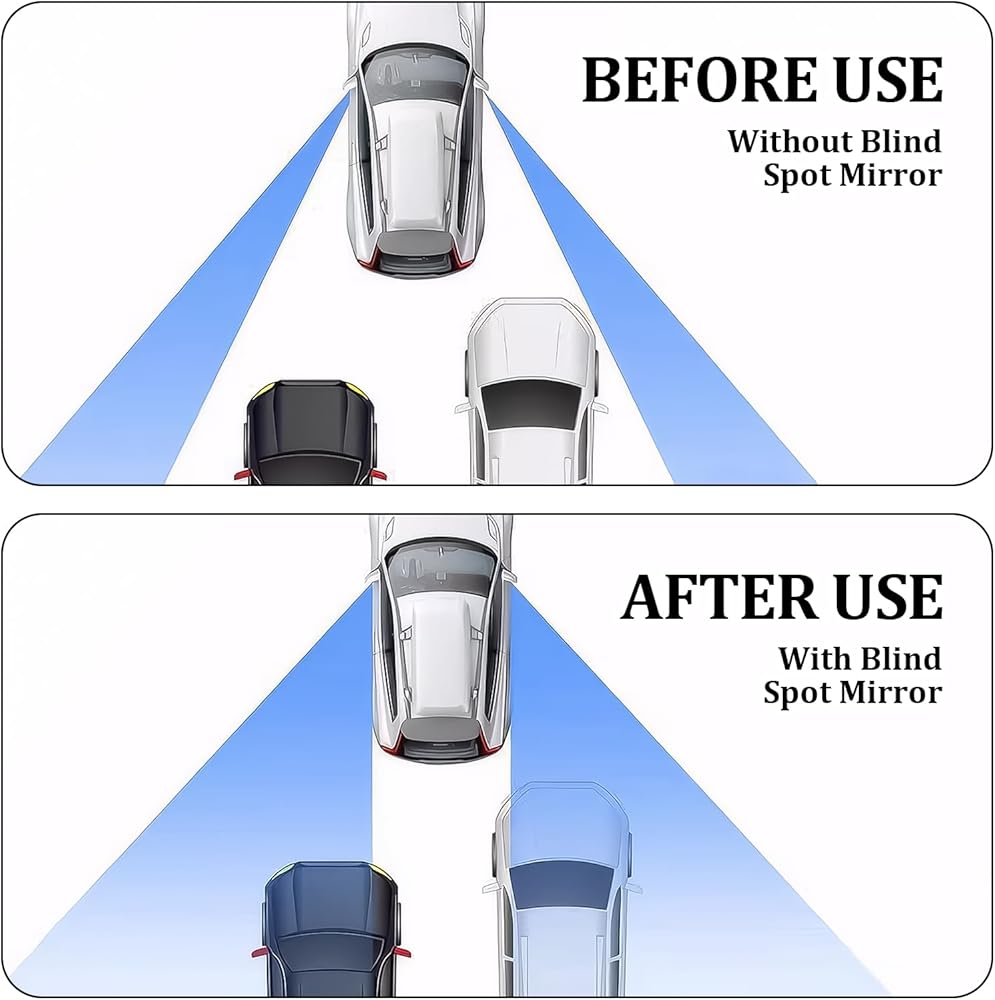 Wide Application: Suitable for all types of vehicles. Whether it is a car, truck or suv, blindspot mirror for car can be easily installed and provide additional safety protection. Easy and quick installation, no tools required, suitable for the rearview mirrors of most vehicles. Whether it is a family car or a commercial transport vehicle, blind spot mirrors can provide you with reliable protection.