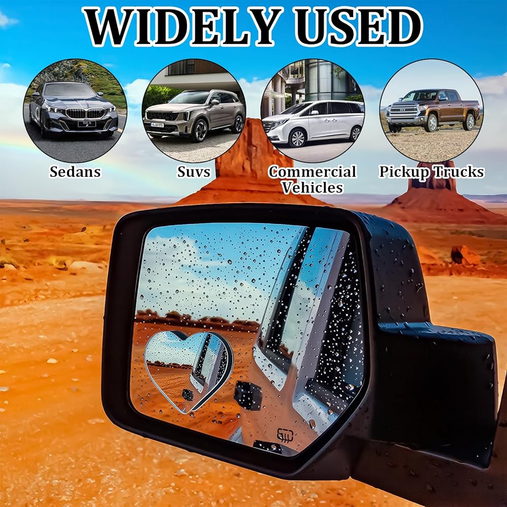 Package Contents: You will receive 2 pairs of espejos de punto ciego para carros (round + heart shape) in different styles, sufficient quantity to meet your daily needs. Whether driving on city roads or highways, this car blind spot mirror can provide you with an ideal vision, making your driving safer and more comfortable.