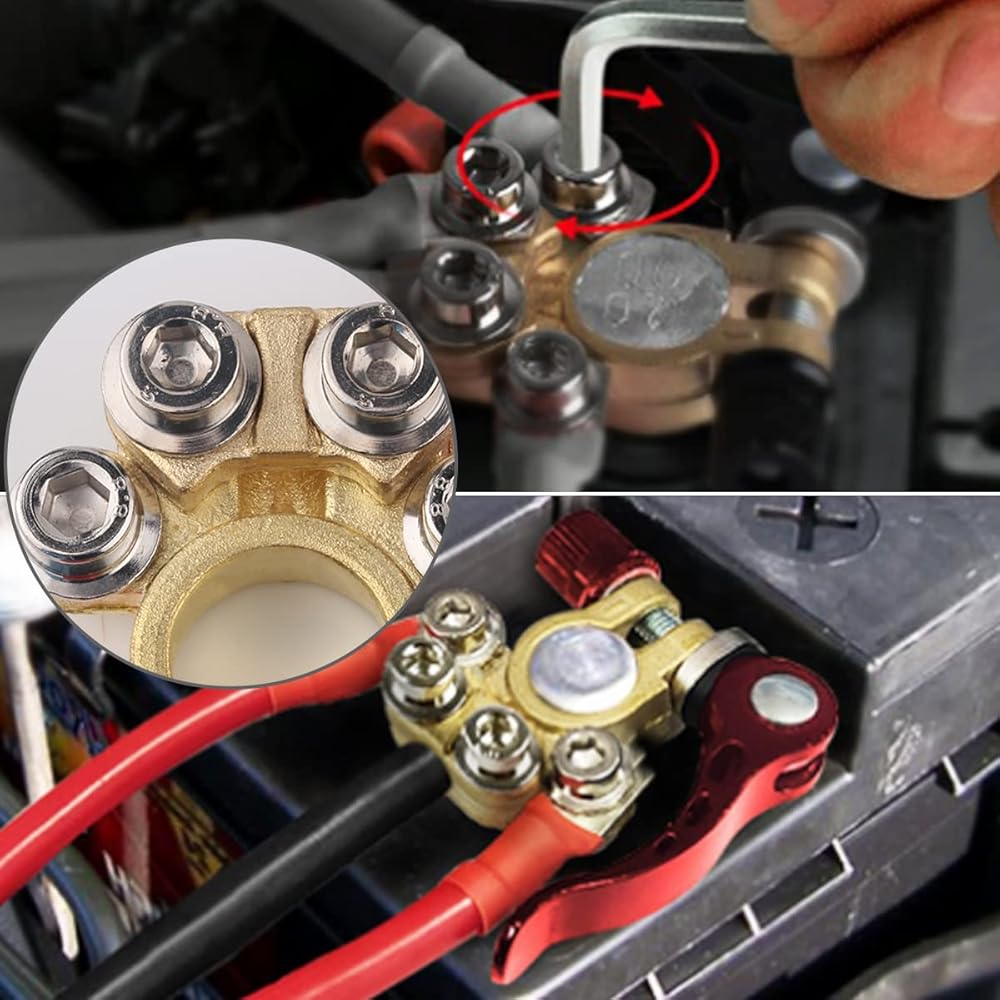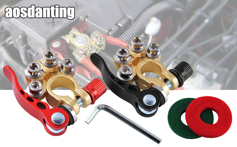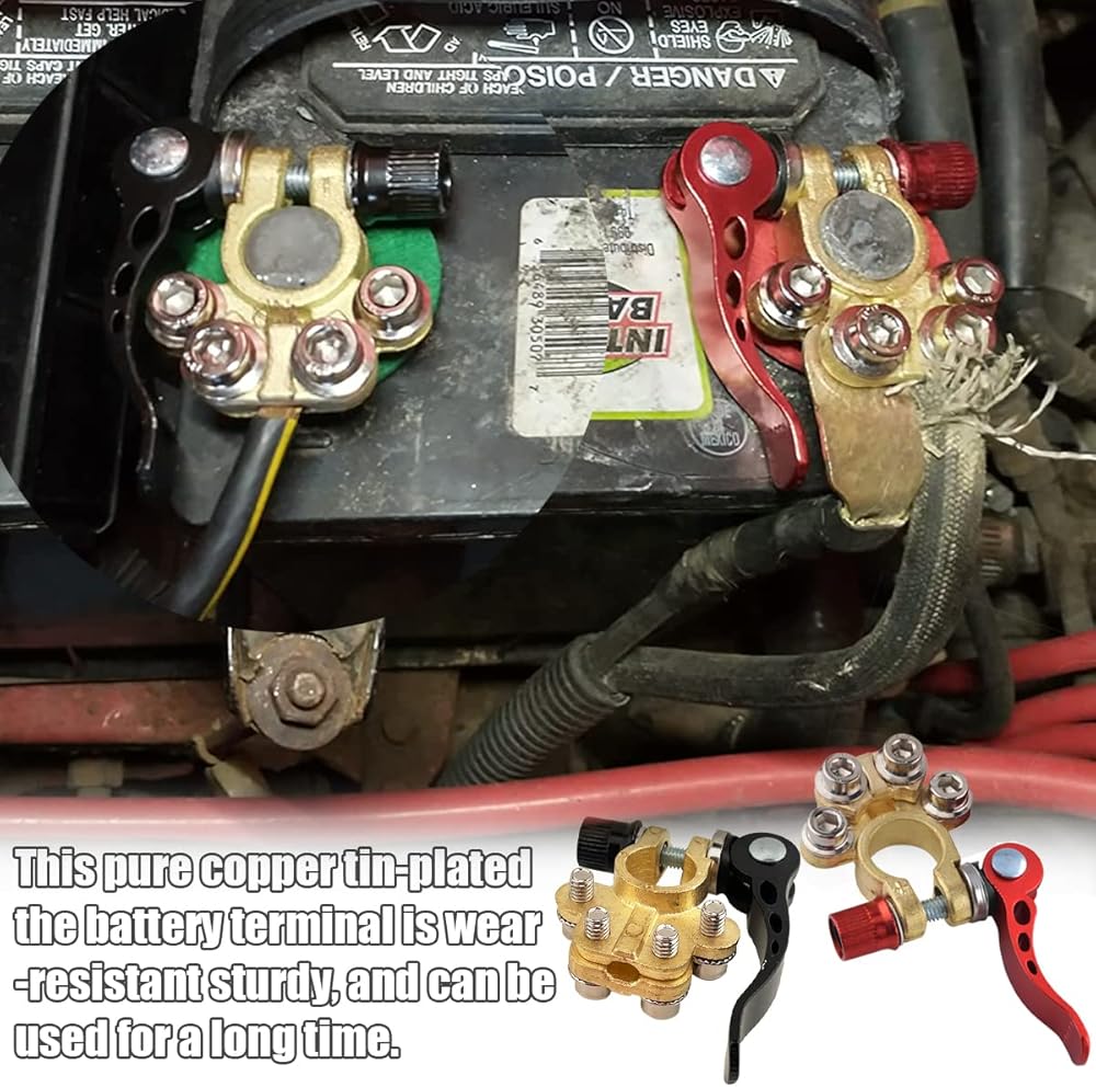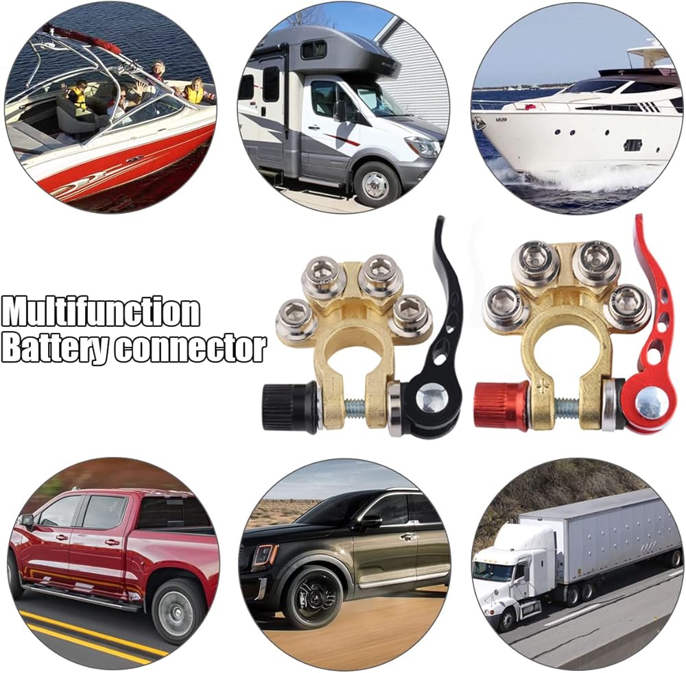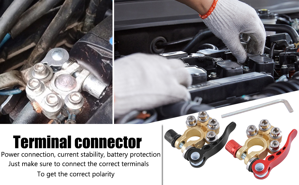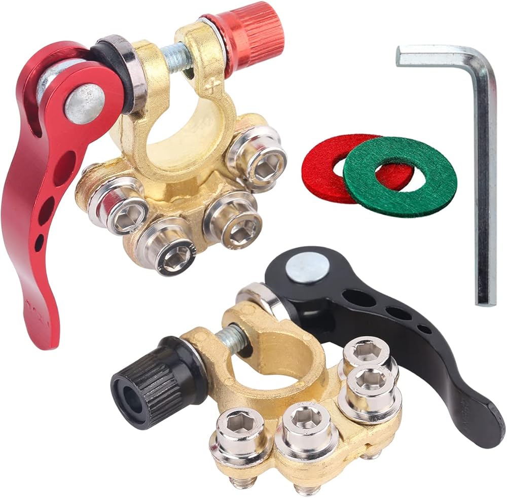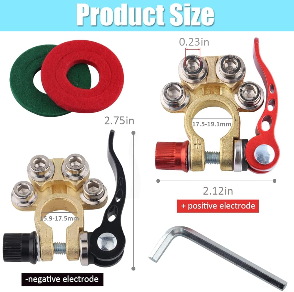 موصل طرف بطارية السيارة: تحتوي هذه العبوة على موصلات طرفية للبطارية الموجبة والسلبية (2 قطعة في المجموع) مع 4 أطراف لتوصيل الأسلاك، كما أنها مجهزة بمفتاح ألن لسهولة الفك والاستخدام.