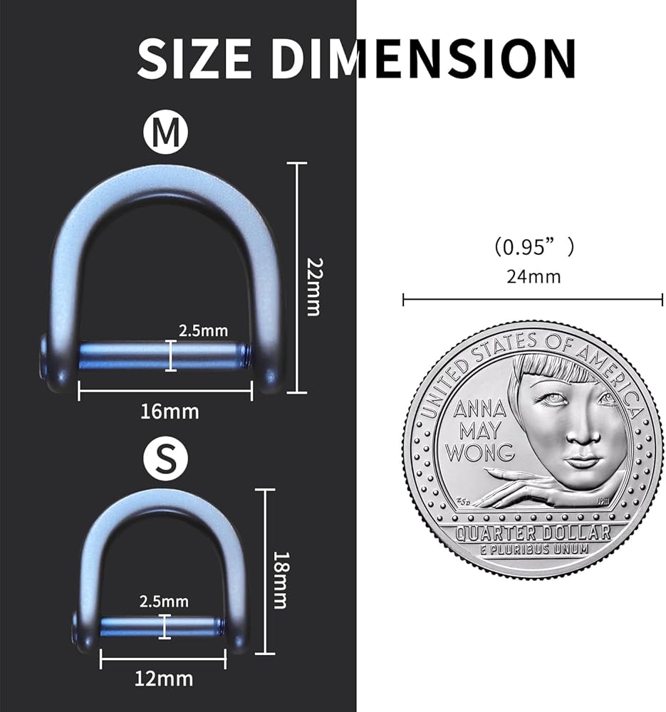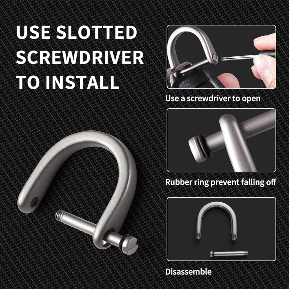• INTELLIGENT DESIGN OF D RINGS: The cross bar design of this titanium D ring ends with a screw, we added rubber spacers to avoid screw slippage. Easy and simple to install and use, just need a screwdriver to open and close. (Screwdriver not included in package)