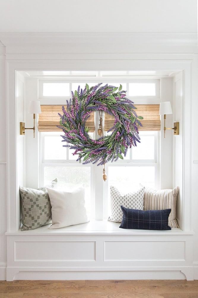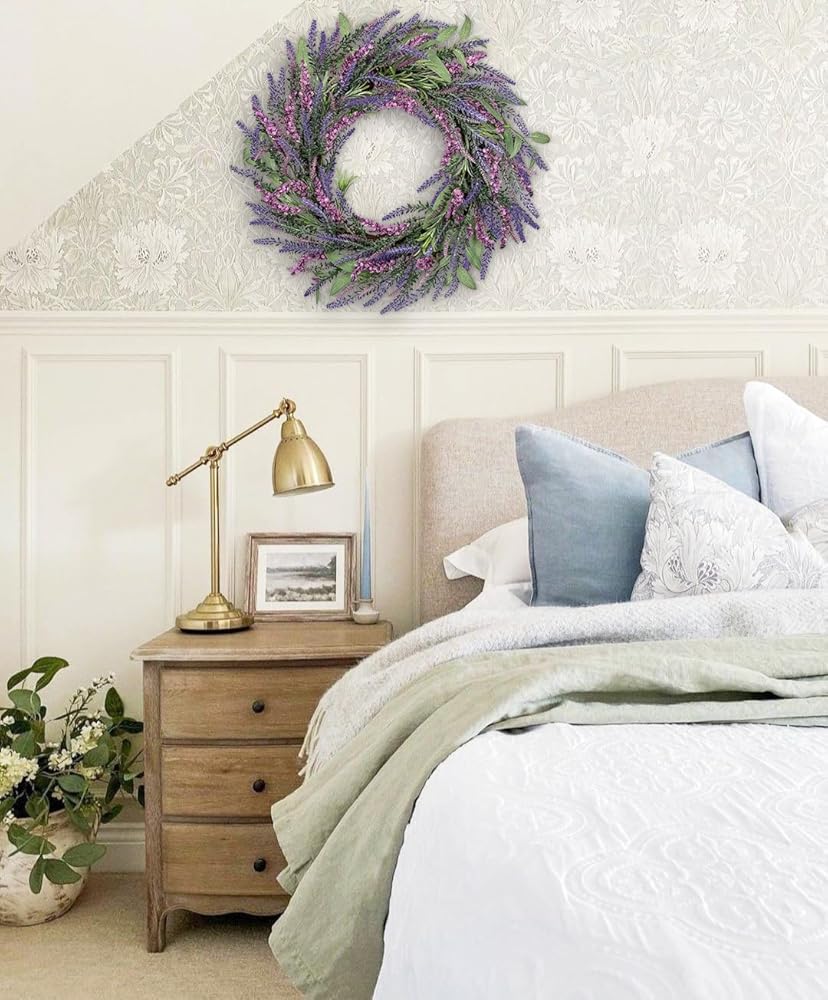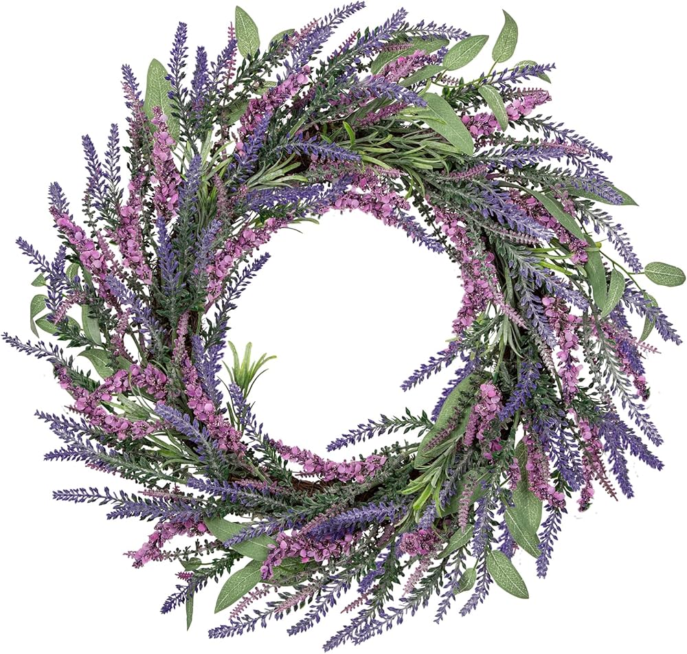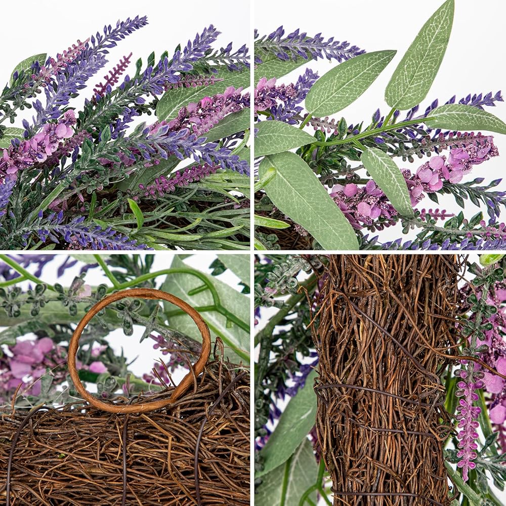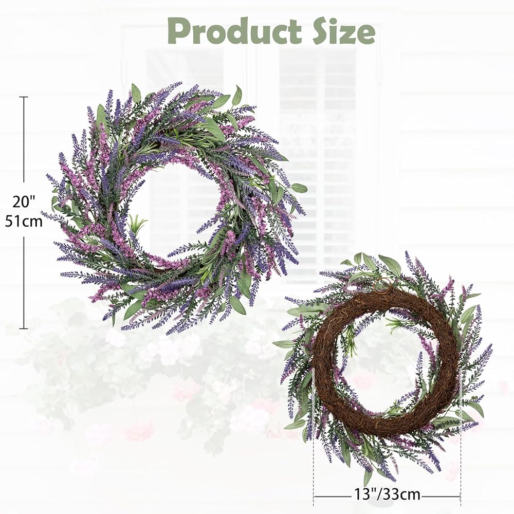 مناسبة لأي موسم: 20 بوصة الزهور الخزامى المزيفة يوفر جمالًا خالدًا ويمكن عرضه على مدار السنة. سواء كان الربيع أو الصيف أو الخريف أو الشتاء ، فإن إكليل الزهور يجلب لمسة من الطبيعة والصفاء في أي موسم أو مناسبة.