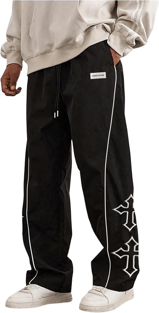 - الميزات: سراويل غير رسمية للرجال للرجال ، والطباعة المتقاطعة ، والخصر الرباط ، مع جيوب ، ساق مستقيمة ، ملائمة فضفاضة