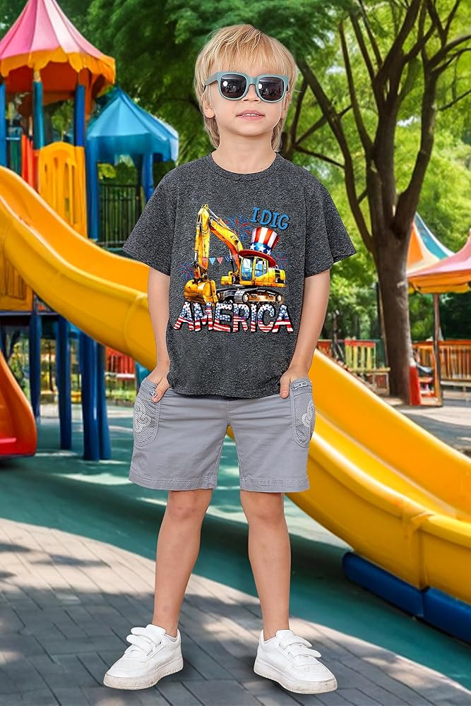 التصميم : قمصان الأولاد الرمادي الداكن ، والتي تتميز بلون صلب مع نقل ثلاثي الأبعاد مثل بيك آب ، حفارة ، جرافة ، وكلمات مثل الله تقول إنني مجرد صبي يحب ، يرتدي بارد ولطيف