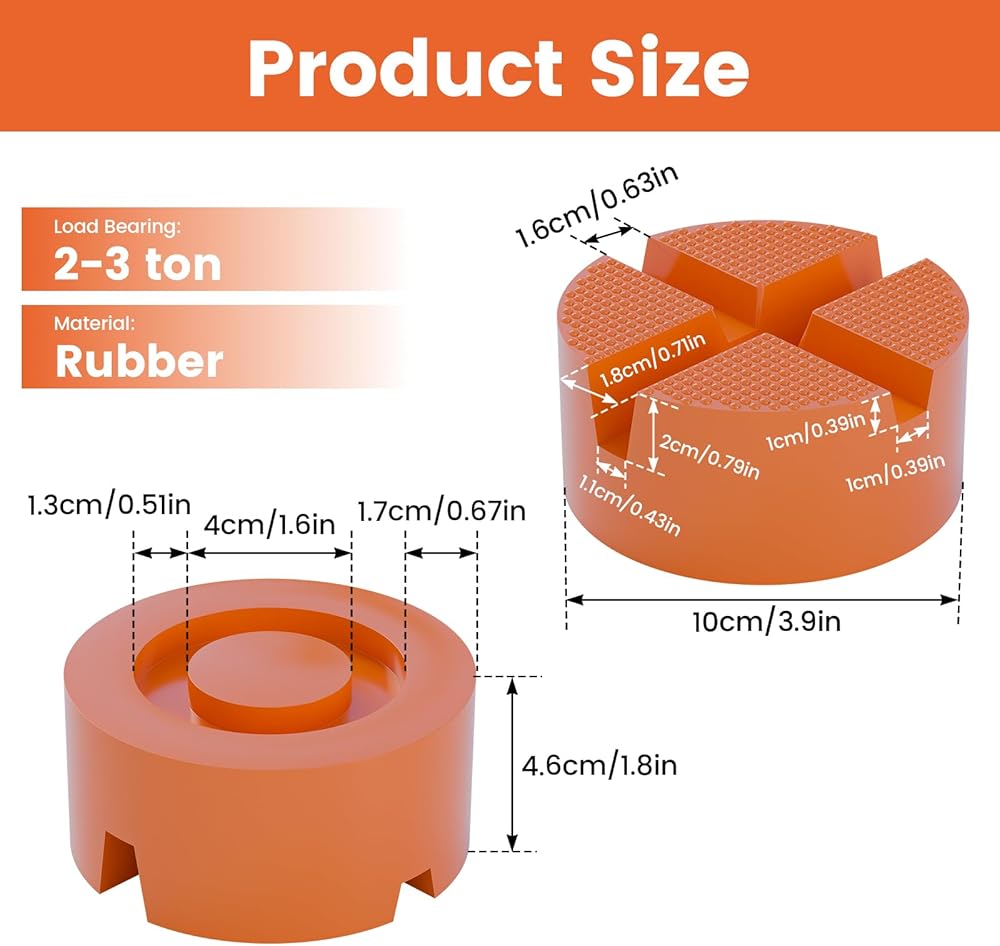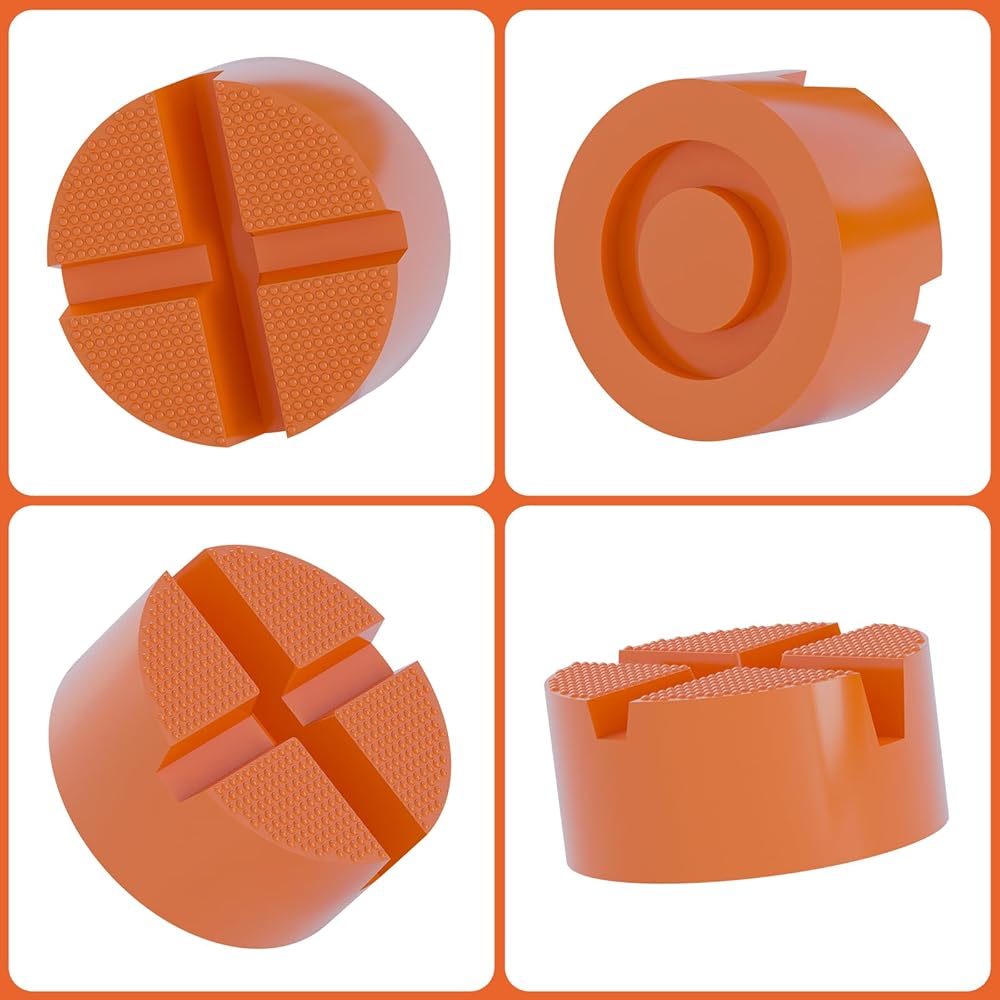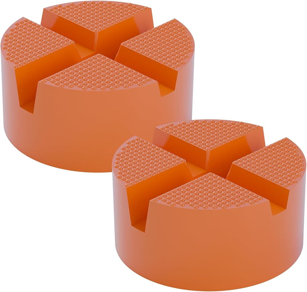 2pcs floor jack rrabber pad ، round dound x -grooves panch patch jack jack pad ، محول سد مقبس عالمي لمقابس المقطورة -حامي السكك الحديدية ، قم بتناسب سيارات مختلفة بسهولة 3.9 × 3.9 × 1.8 في