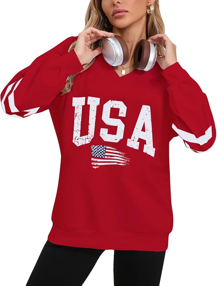 الميزة: هذه بلوزات العلم الضخمة للنساء ميزة مع رسومات الأنيقة الأمريكية وطباعة خطاب الولايات المتحدة الأمريكية. Y2K v Neck Flag American Sweatshirts Women ، قمصان ذات الأكمام الطويلة الوطنية للنساء ، والولايات المتحدة الأمريكية ، قميص من النوع الثقيل ، وملابس العلم في الرابع من يوليو ، ونساء سترات العلم الأمريكي ، والأزياء ، والأسلوب الفضفاضة والطراز غير الرسمي.