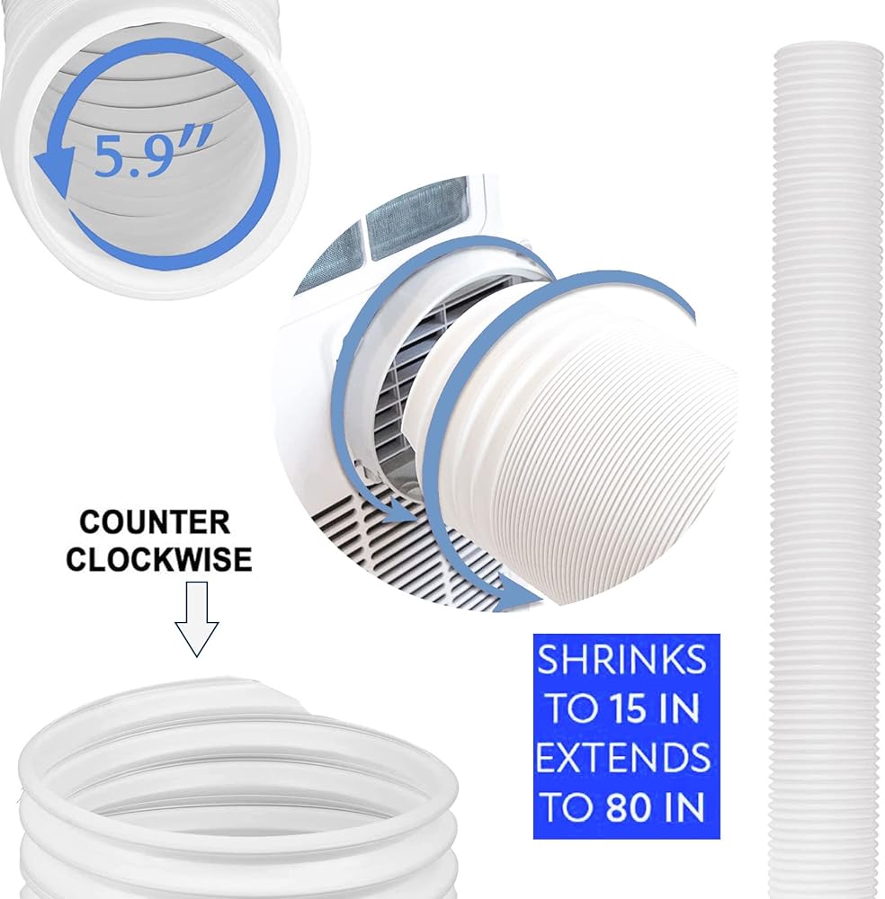 خرطوم تكييف الهواء المحمول - خرطوم عادم خرطوم التيار المتردد، قطر 5.9 بوصة، تمديد الطول حتى 80 بوصة، خيط عكس اتجاه عقارب الساعة، استخدام عالمي لفتحات تكييف الهواء المحمولة، أجزاء تكييف الهواء
