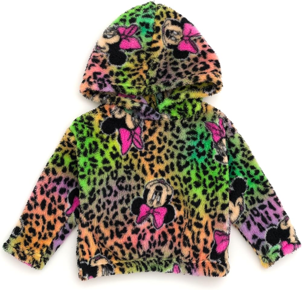 Your little girl is ready for a day filled with Disney magic in this stylish Disney outfit! This comfy woobie hoodie and flare pants set features cute and vibrant artwork of her favorite classic Disney characters! Choose from a cool rainbow colored cheetah print set featuring Minnie Mouse or a purple checkered set featuring Stitch from Lilo and Stitch! Made of a soft material that keeps your child comfortable, this fashionable Disney outfit is perfect for all day adventure and play!