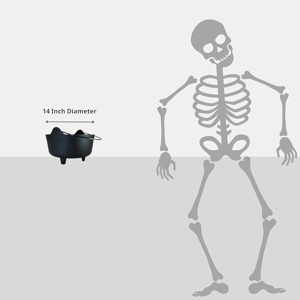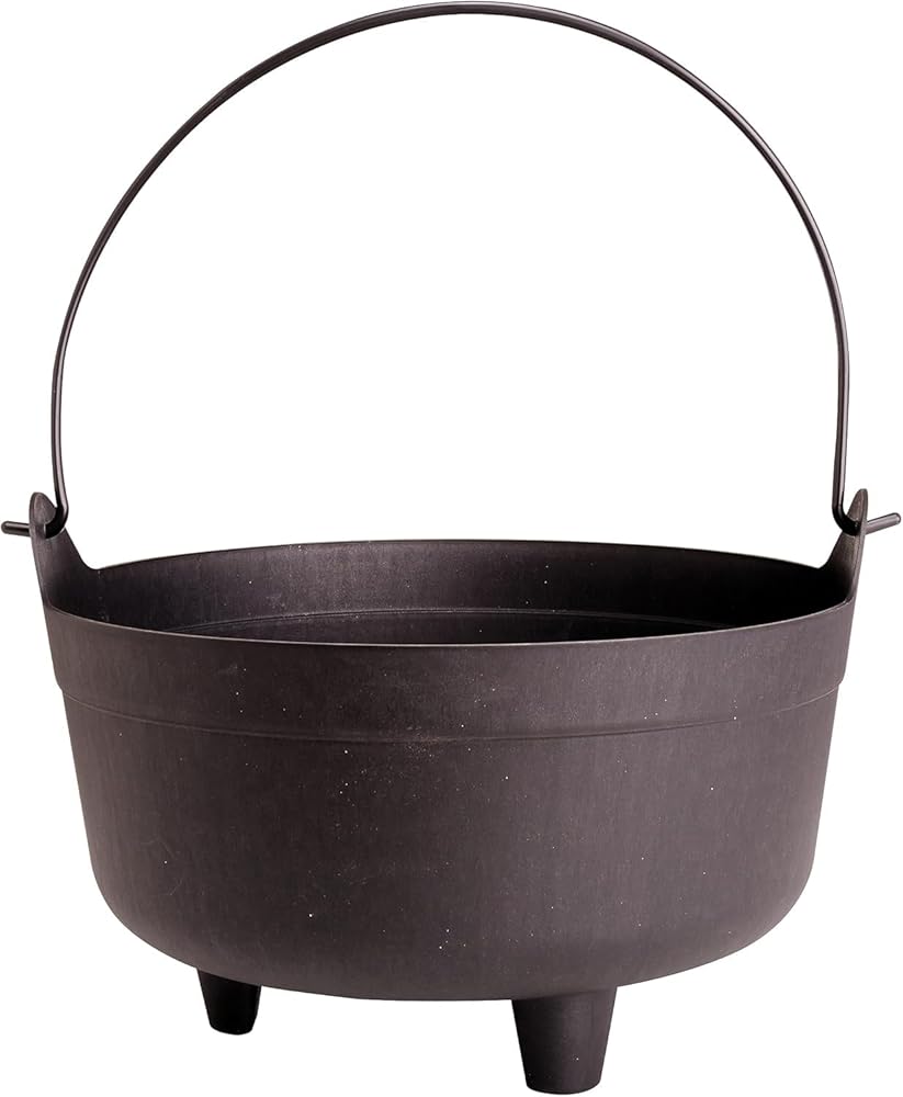 Made from a thick durable plastic, the witch's cauldron is 14 inches in diameter, 6 inches deep, and approximately 10 inches tall. Let this Witch's Cauldron be the highlight of your Halloween.