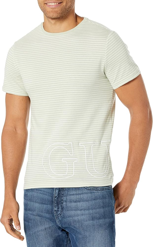 تي شيرت رجالي من GUESS، رمادي، شريط صغير، مقاس XL