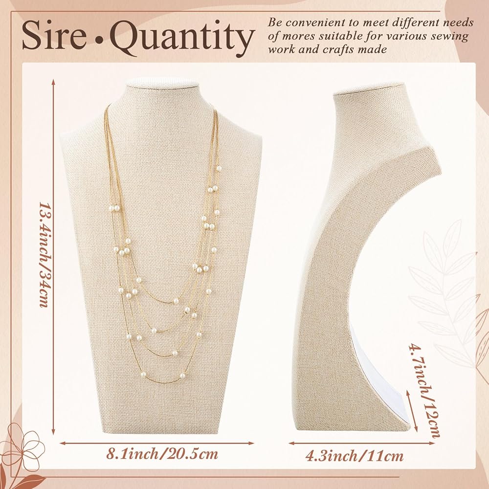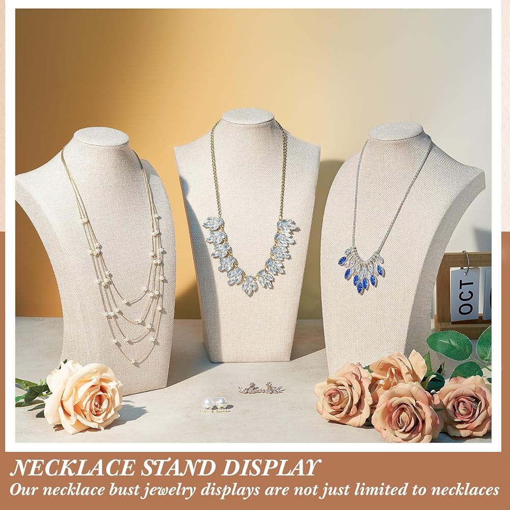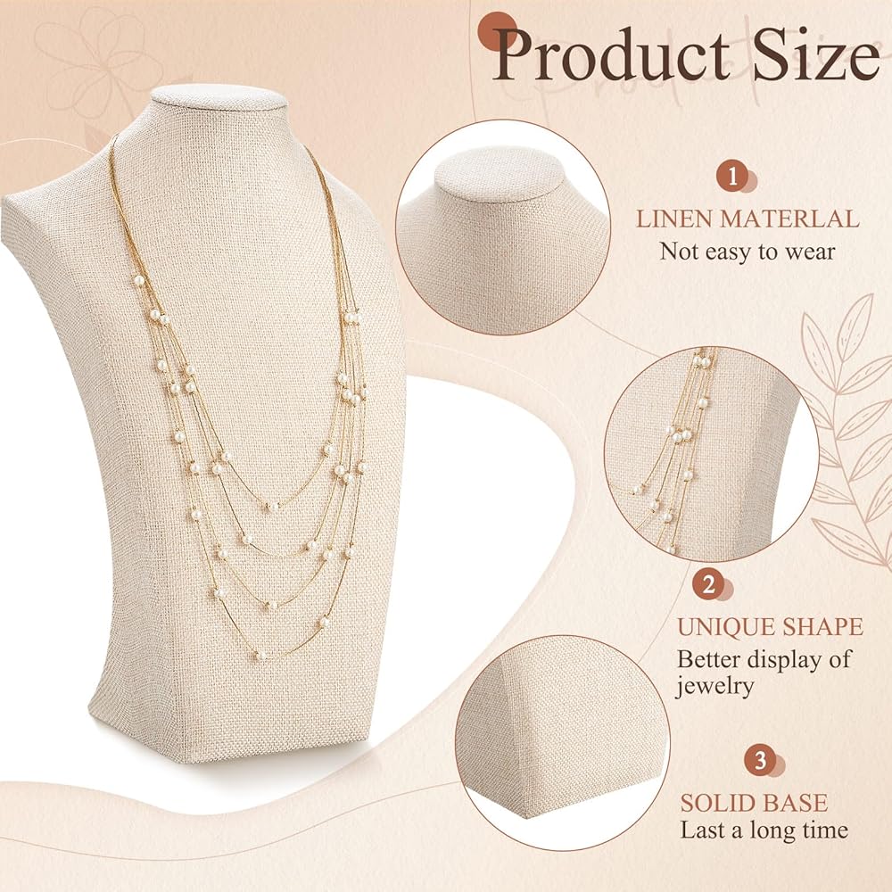 مواد موثوقة ولون: مصنوع من بياضات الجودة والخشب الاصطناعي ، يعد حامل القلادة المتانة واللمس الأنيق ؛ يضيف لون الكتان لمسة من التطور ، مما يجعل مجوهراتك تبرز