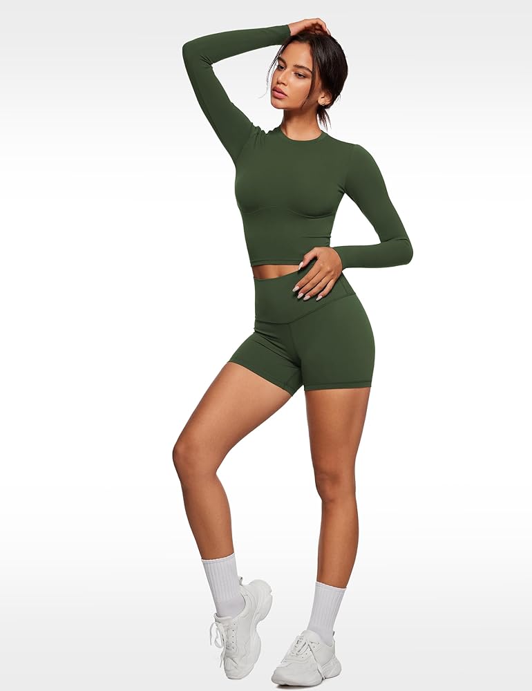 b>CloudLUXE collection features super softness and stretch. Hip-length long-sleeved tops complement high-waisted pants perfectly.Ideal for yoga, workout, fitness, and exercise.