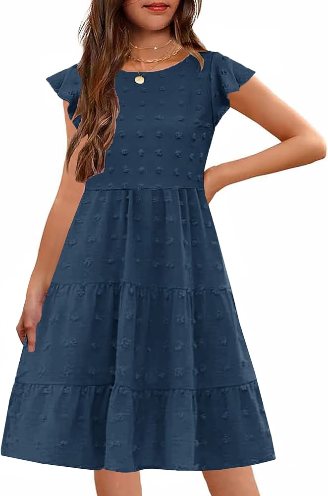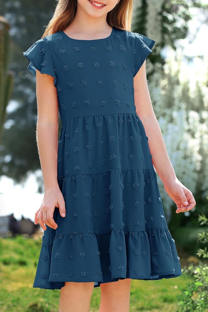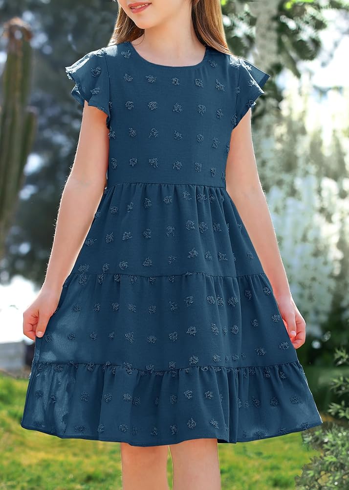 سوبر لطيف! فساتين العطلات لصيف الفتيات. يعد تصميم النقاط السويسرية عبارة عن مجموعة حقيقية للعين ، ويتأرجح قسم تنحنح الكشكش مع كل خطوة تتخذه فتاتك الصغيرة ، مما يجعل الأميرة تبدو جميلة وأنيقة