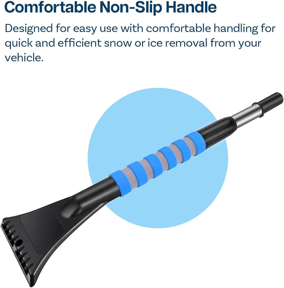 Crafted with a non-slip handle, this automotive accessory is designed for easy use. The ergonomic grip ensures comfortable handling, allowing you to quickly and efficiently clear your vehicle without straining your hands. Made from durable ergonomic foam, the snow brush and ice scraper is built to withstand harsh winter weather. This reliable tool will not break or crack under pressure, providing dependable performance through multiple winters.