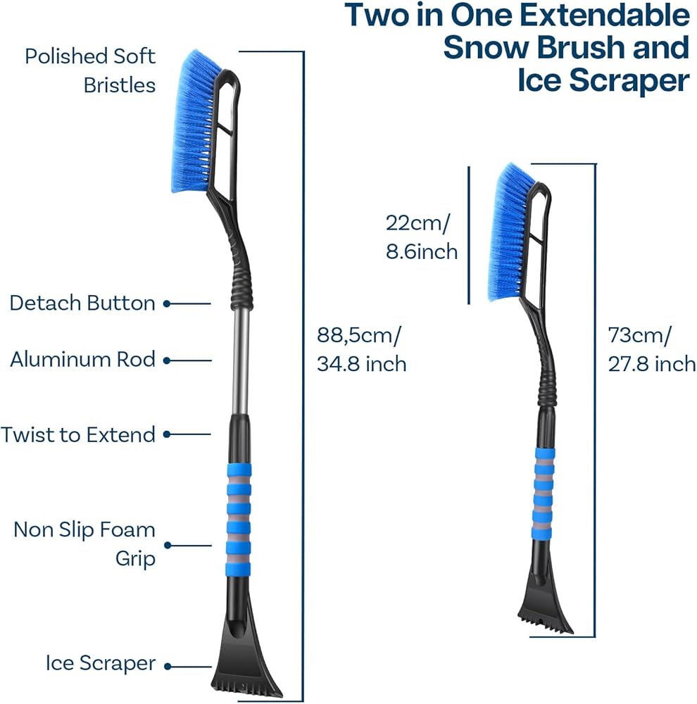 With its compact size and detachable parts, this snow brush and ice scraper can easily be stored in your vehicle for quick access. It's the ideal car gadget for everyone who values convenience and practicality when it comes to vehicle accessories during winter.