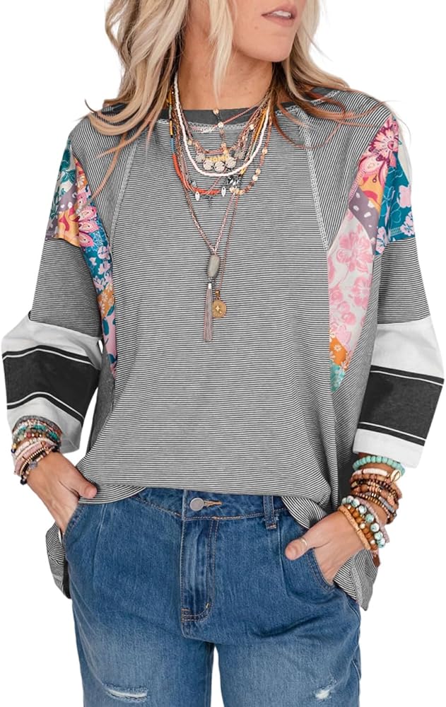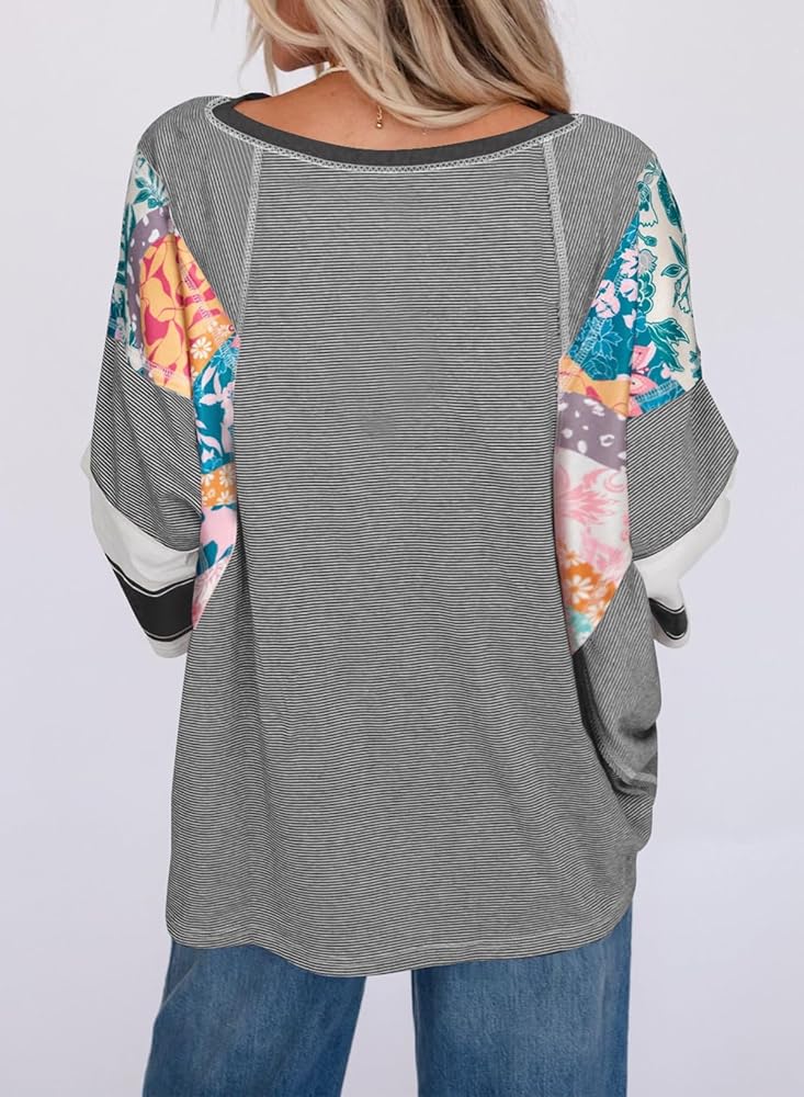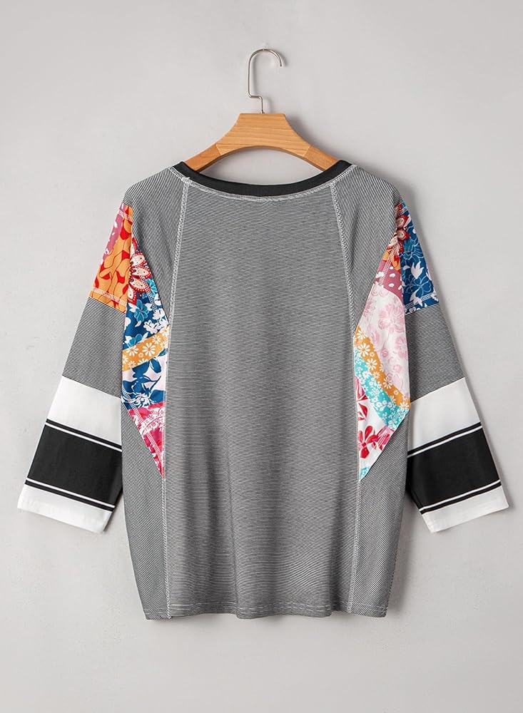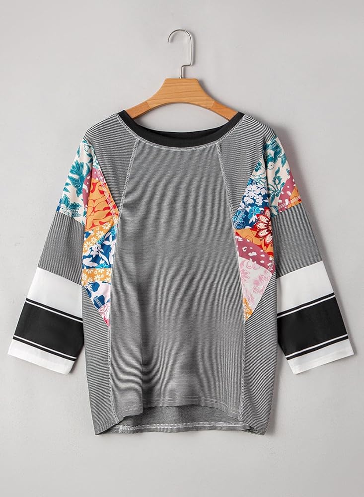 الميزة: البلوزات الضخمة للنساء الأنيقة غير الرسمية ميزات Crewneck ، 3/4 Batwing Sleeve مع التصميم المرقع ، الحافة الخام ، نمط بوهو ، ملاءمة فضفاضة ، وتوفير نظرة مغلقة وأنيقة