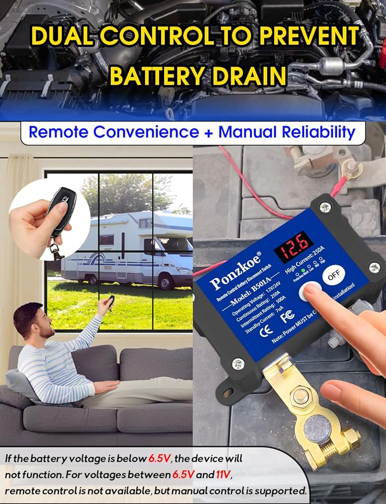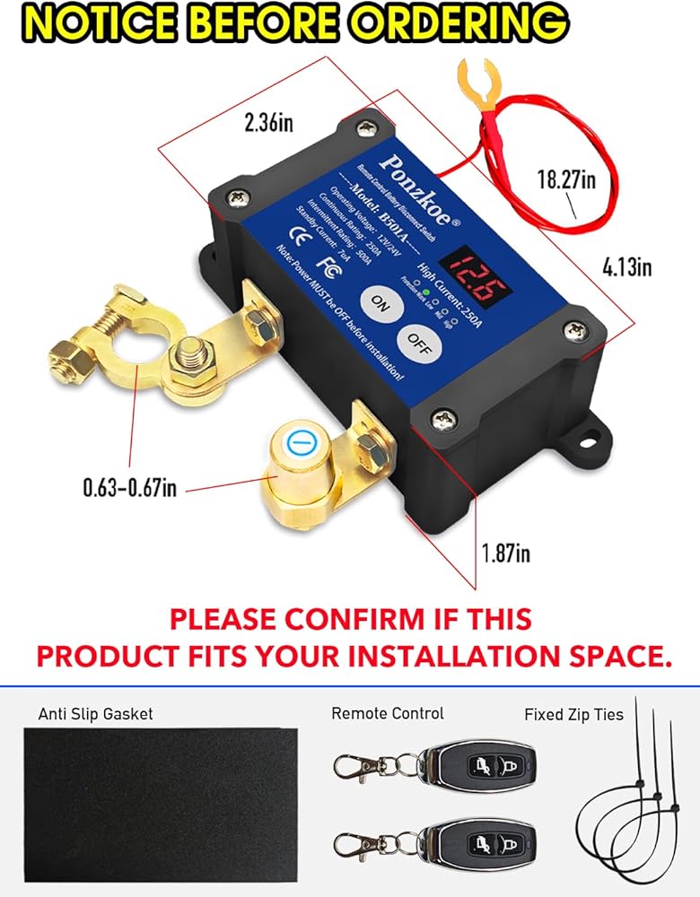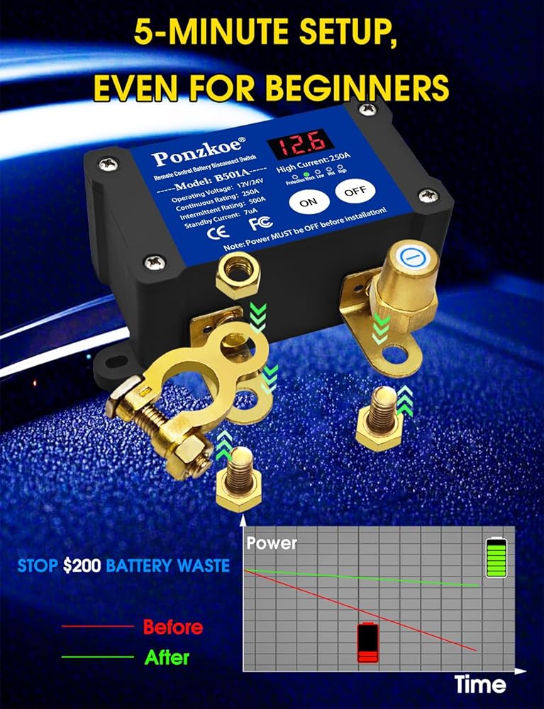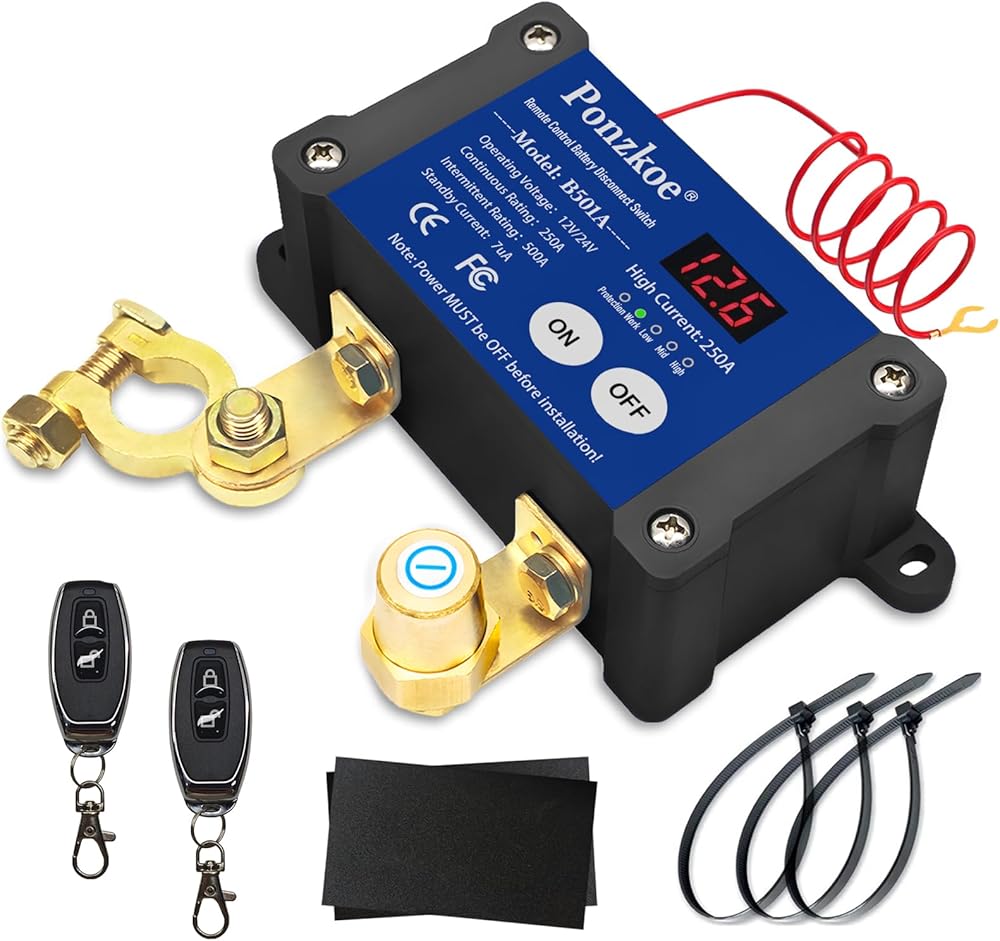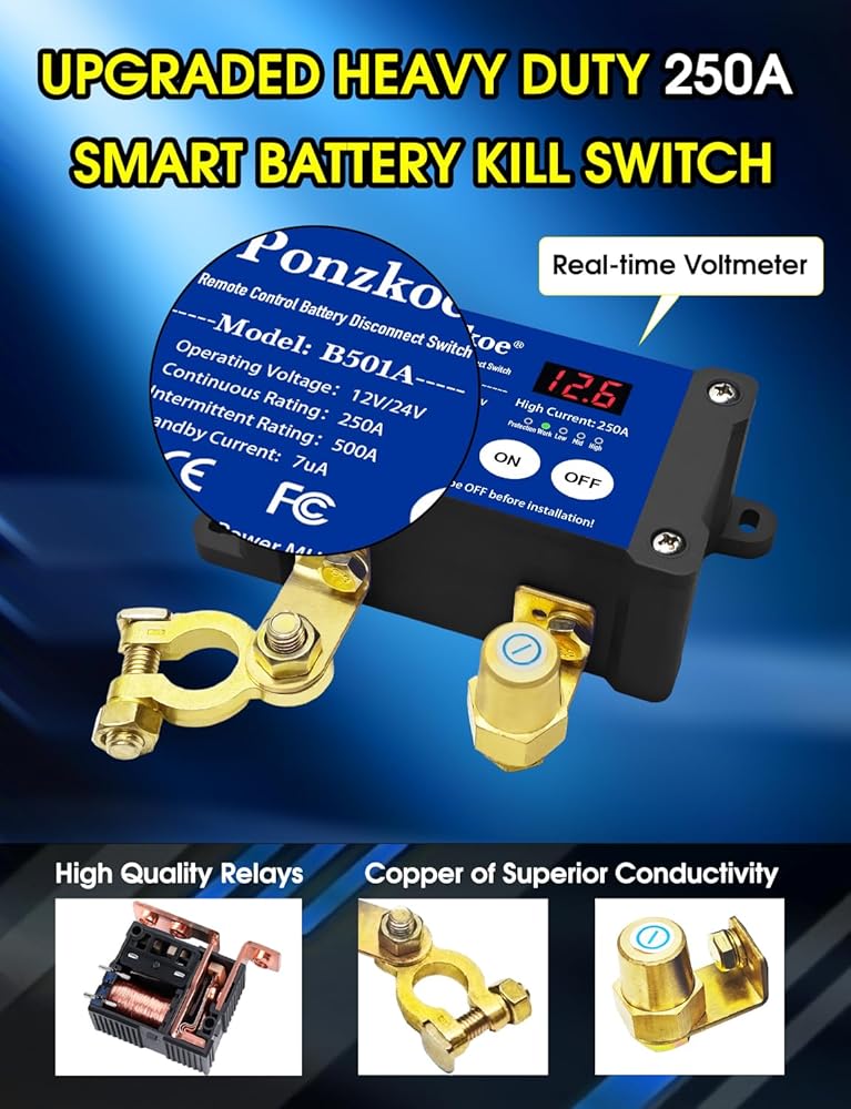 250A Remote Battery Cutoff Disconnect Switch 12V 24V, Negative Vertical
