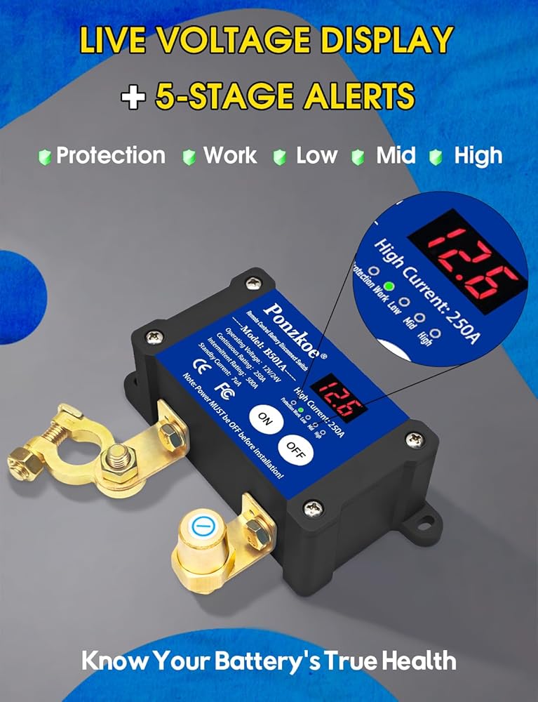 250A Smart Remote Battery Disconnect Switch 12V 24V - مفتاح القتل السريع للسيارة ، بطارية مضادة للسرقة قطع المفاتيح لقوارب Truck Marine RV ATV ، الخدمة الثقيلة | عرض جهد LED I سلبي رأسي
