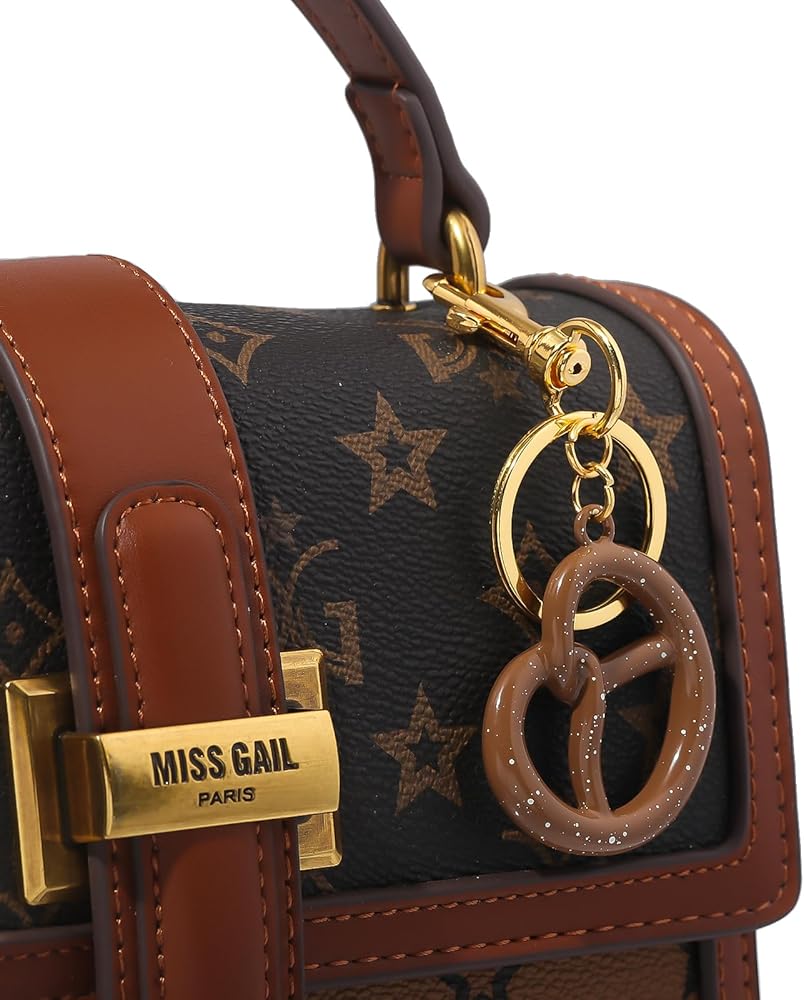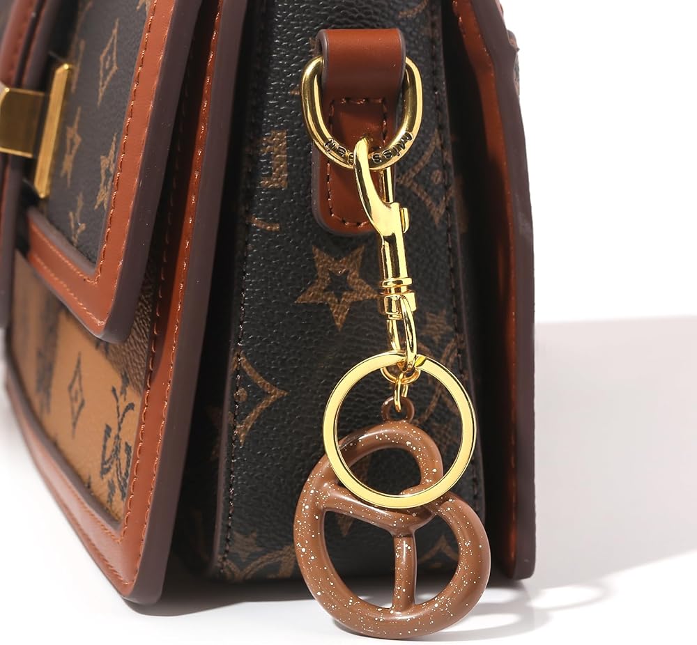 التصميم: تتكون سلسلة المفاتيح من سحر pretzel ، وقطعة ذهبية وحلقة مقسمة تجعلها تتسكع بسهولة على المفاتيح أو الحقيبة