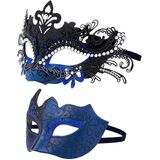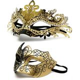 Masquerade Mask for Couples Party Masks Set, Metal Filigree Shiny Rhinestone Venetian Mask for Ball Mardi Gras
