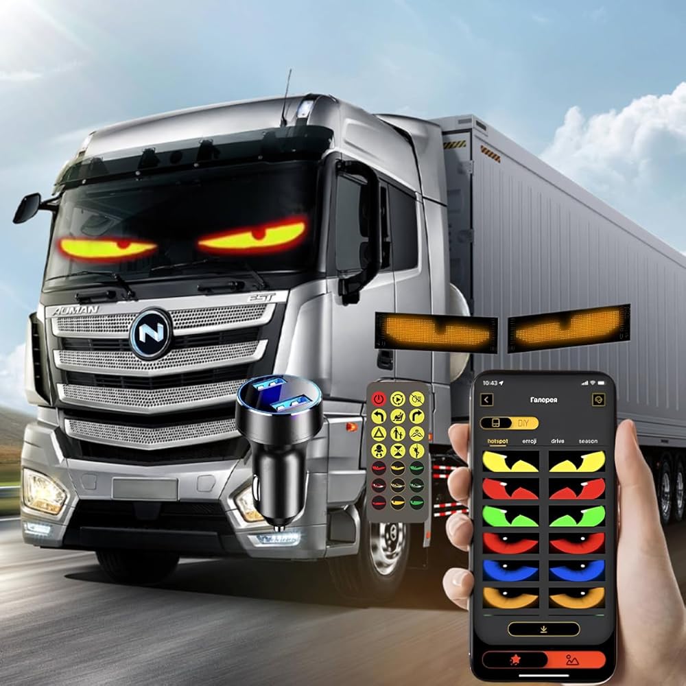 【Transform Your Ride】: Give your truck a unique edge with our flexible LED "Devil Eyes Light." Create mesmerizing moving displays on your windshield. Customize text, colors, and animations via our easy-to-use mobile app (iOS & Android) or the included remote. Make a statement wherever you go! ojos led para carro