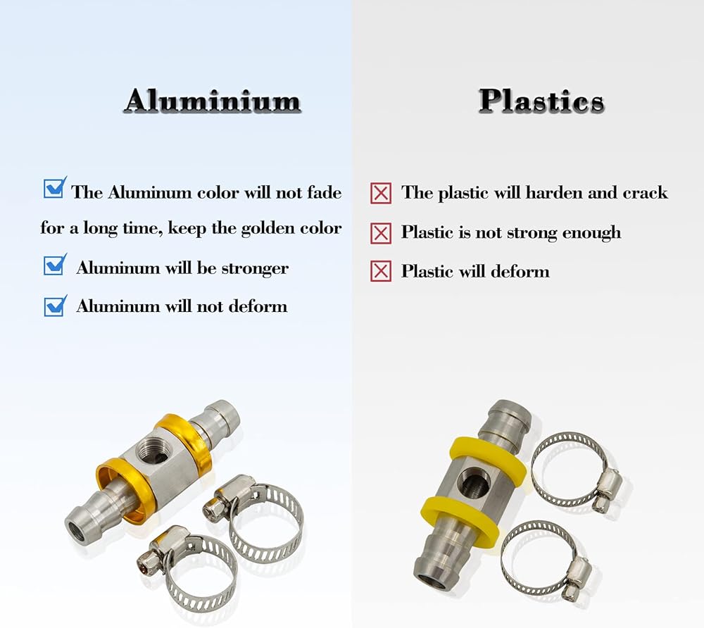 Anti-Corrosion and Strong Tightness:This fuel line T-fitting adapter is made from 304 stainless steel that prevents Corrosion.The barbed design increase the sealing of adapter and fuel line and The two hose clamps are for installation in tight-fittings and secure the vehicle¡¯s fuel line to the barbed fittings for a leak-free connection