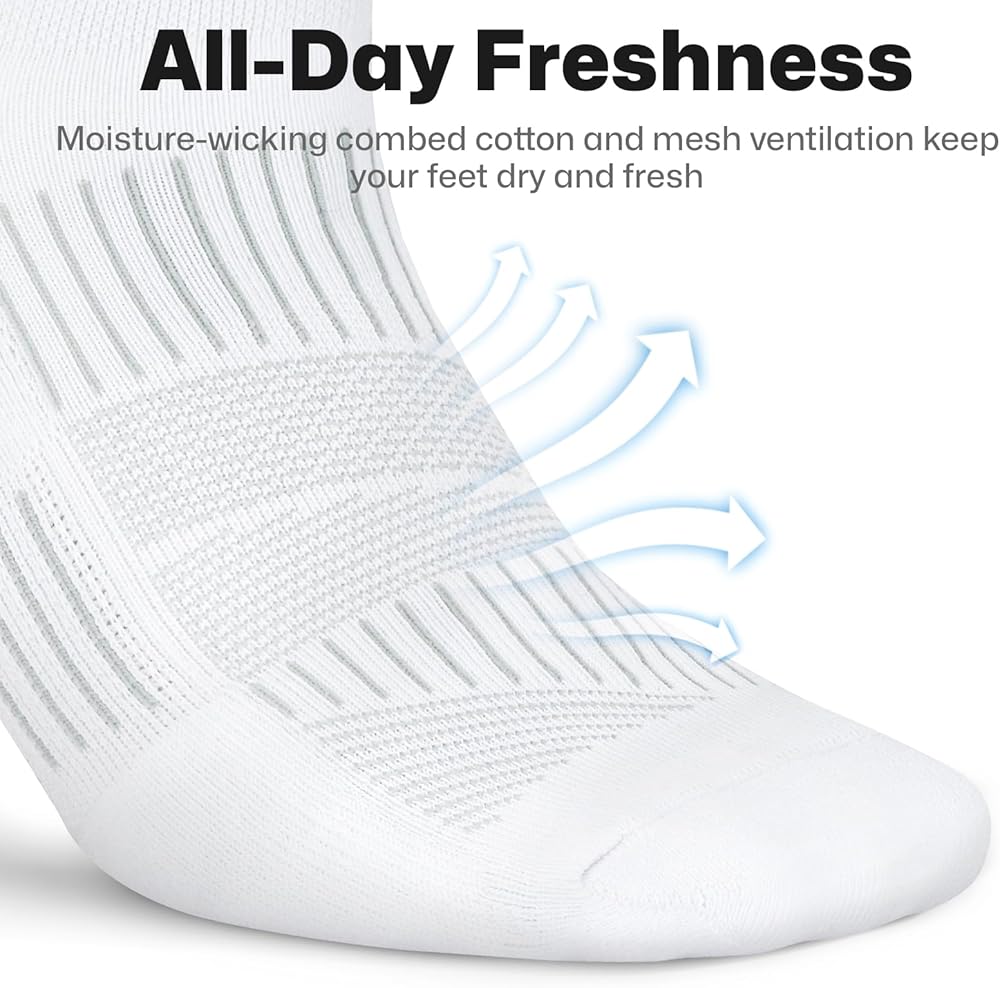 تصميم التنفس والتصميم بدون انزلاق: يعزز التهوية الشبكية تدفق الهواء للحفاظ على قدميك باردة وجافة طوال اليوم ، بينما تمنع علامة التبويب الكعب المقوى الانزلاق. إلى جانب الكفة المرنة المتميزة ، توفر الجوارب الرياضية الخاصة بنا نوبة مرنة ولكنها مرنة تظل في مكانها بشكل آمن - تهيج وتغضب. سواء كنت تدير ماراثون أو تدفع من خلال التدريبات المكثفة ، فإن هذه الجوارب توفر الراحة والأداء.