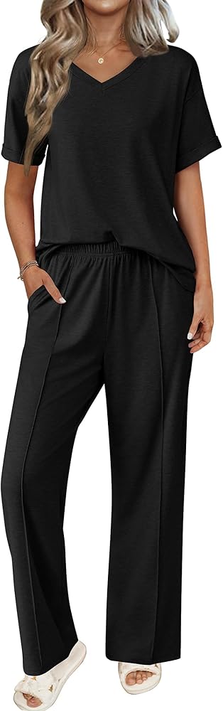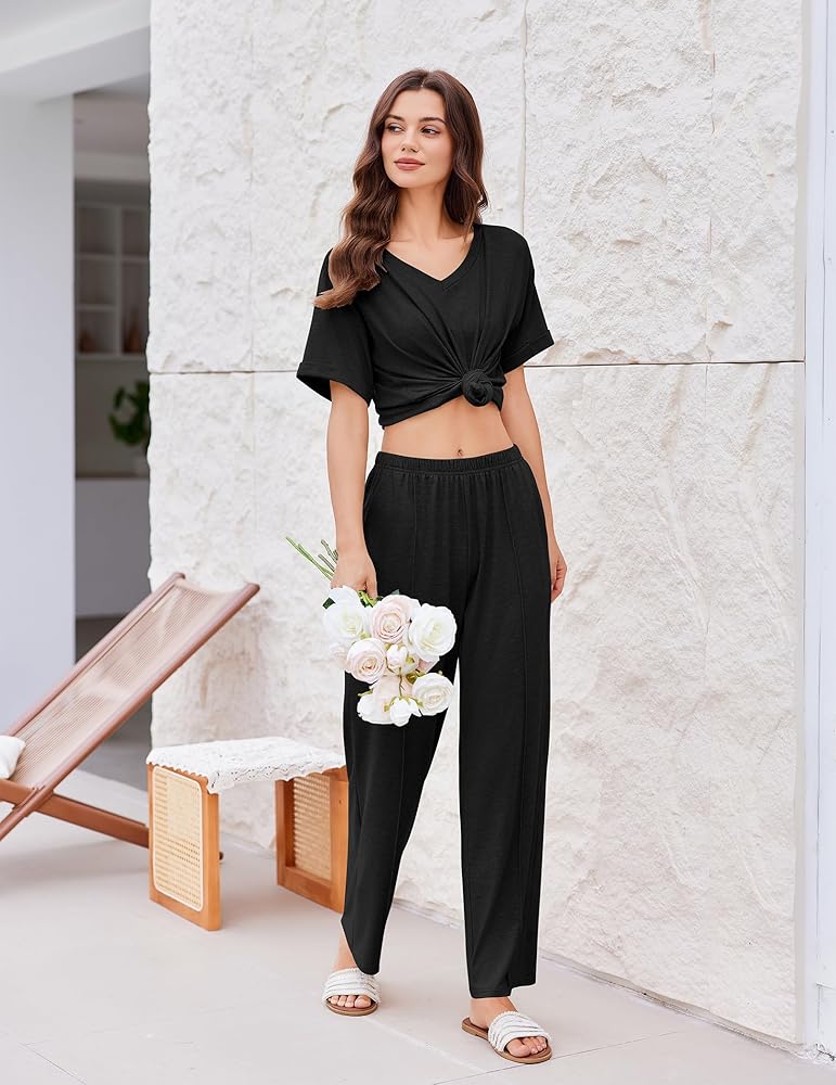 【تنوع الفكرة وفكرة الهدايا】 مزيج ومطابقة دون عناء: إقران أعلى اللون الصلب مع الجينز للغداء ، أو ارتداء السراويل المتدفق مع الخزانات للمهمات. الانتقال بسلاسة بين ملابس النوم والملابس غير الرسمية. مجموعة صالة من قطعتين رائعة لقضاء العطلات ، والتجمع ، والتجمعات العائلية وحفلات الأصدقاء. هدية دافئة لأمك وأصدقائك وزوجتك وابنتك وصديقتك.