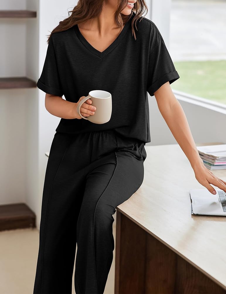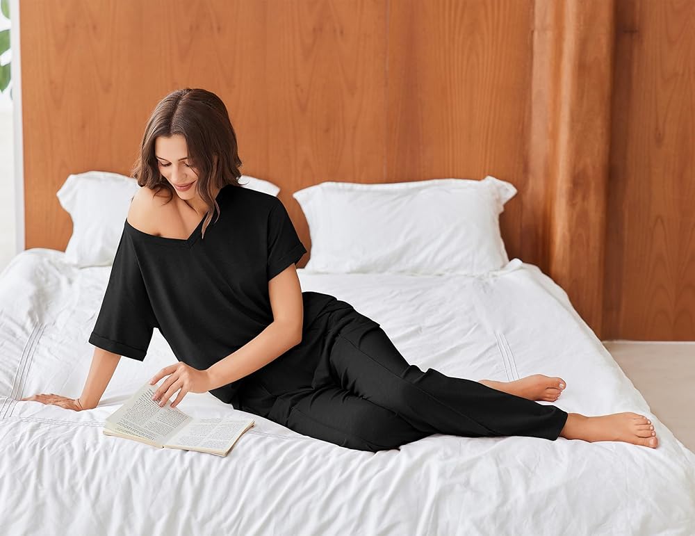 【النسيج الناعم للزبد للراحة طوال اليوم】 76 ٪ من البوليستر + 19 ٪ Viscose + 5 ٪ لدنة يخلق بيجامات فائقة الوزن وخفيفة الوزن التي تتخلى بشكل طبيعي عن الرطوبة ومقاومة التجاعيد ، مما يوفر راحة ممتدة تظل باردة خلال ليالي الصيف ودافئة على مدار السنة. مثالي للنوم أو اليوغا أو التسكع.