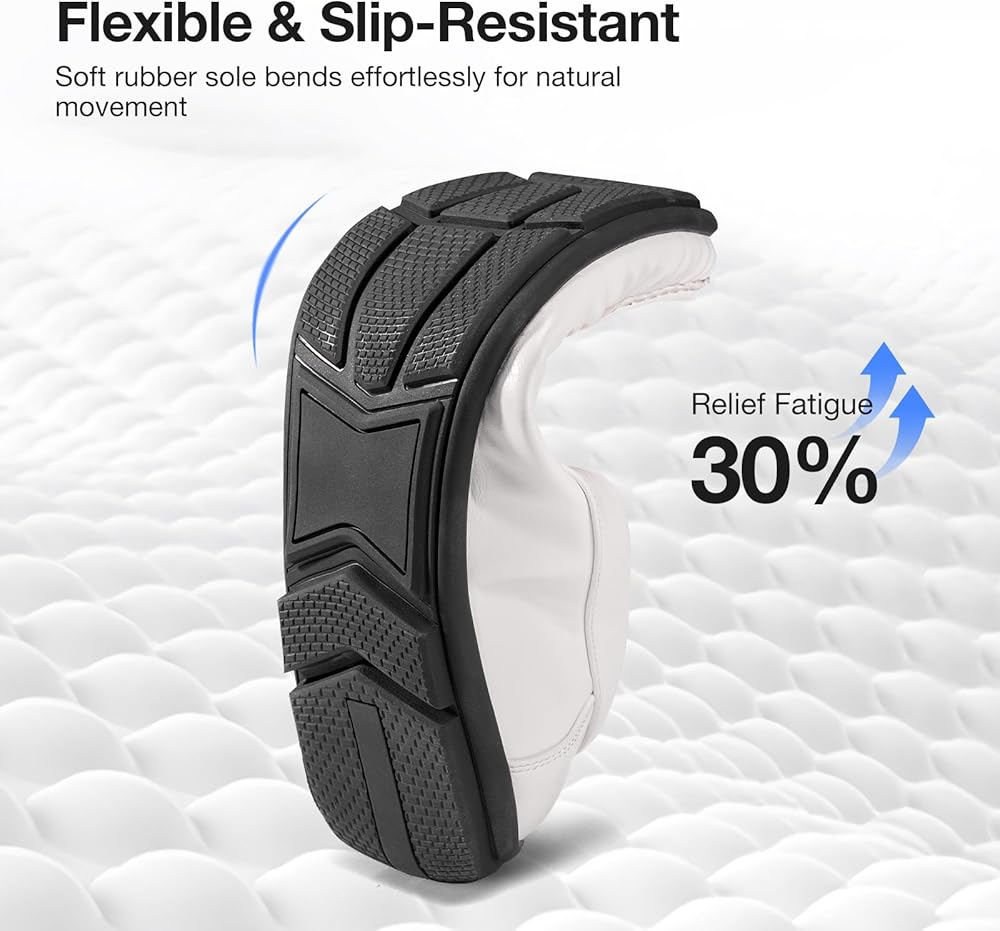 • [مضاد للانزلاق ومرن]: فهي تعرض نعل MOC من المطاط الصناعي ، وهو خفيف الوزن ، متين ، ومقاوم للانزلاق. إنه يوفر المرونة ، مما يسمح بسهولة الانحناء والحركة. إن مزيج الميزات يجعلها خيارًا مثاليًا للأحذية المريحة والعملية ، خاصة بالنسبة للأنشطة التي تنطوي على القيادة أو تتطلب ارتداءًا طوال اليوم.